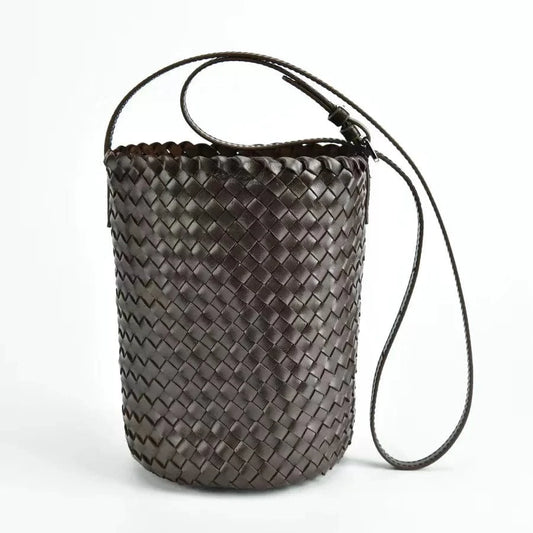2024 New Head Layer Calf Leather Handmade Woven Bucket Handbag Genuine Leather Retro Cylinder Single Shoulder Crossbody Bags
