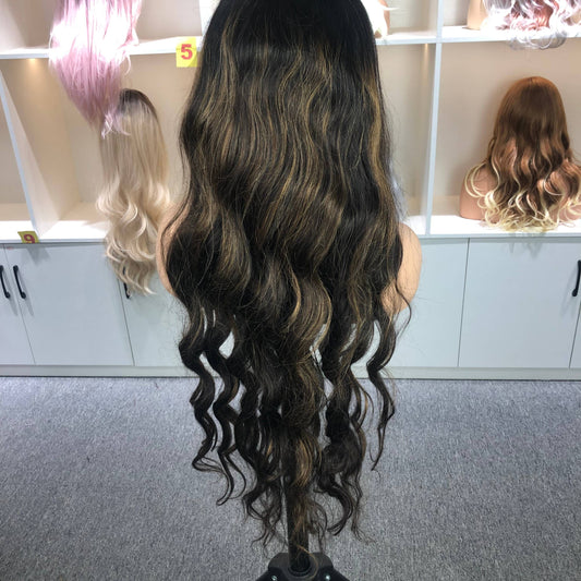 Dark Golden Brown Body Wave Lace Frontal Human Hair Wig for Women Peruvian Remy with Baby Hair Glueless13X4 Lace Front Wig