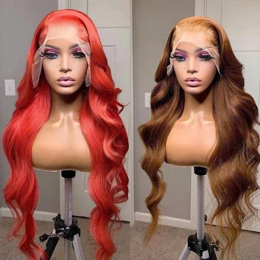 Hot Sale Free Shipping 200% Body Wave 13x4 Lace Front Human Hair Wigs For Black Women Orange Ginger Colored HD Lace Frontal Wigs