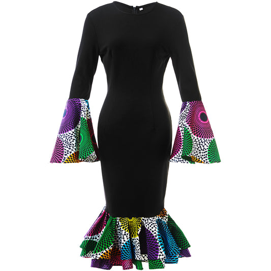 Hot Sell African plus size womens clothing long sleeve dresses wax print fabric ankara pattern dress African Clothing For Women
