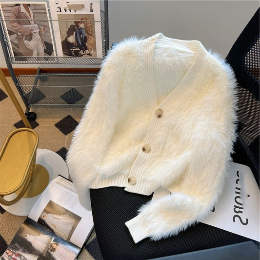 Autumn Winter Ladies Clothing Knitted Cardigan Cashmere Beaded Sweater Coat Plus Size Women's Sweaters