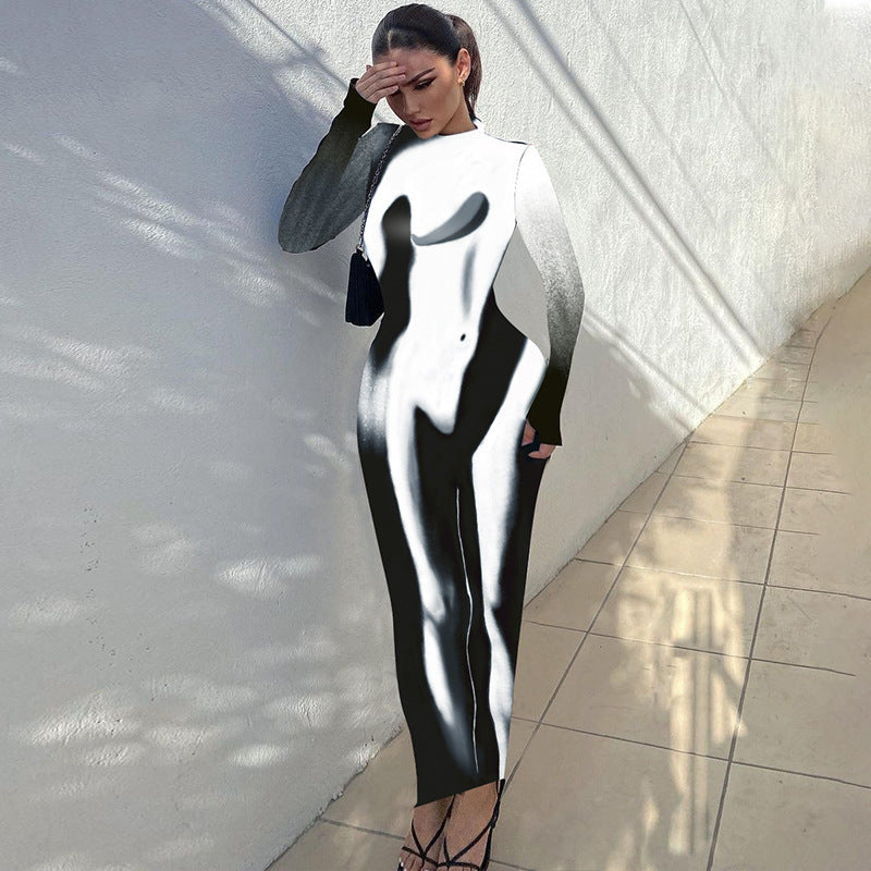 10115 O Neck Long Sleeve 3D Print Zipper Back Tube Bodycon Women Dress 2022 Fashion Party Prom Club Elegant Wholesale Clothes
