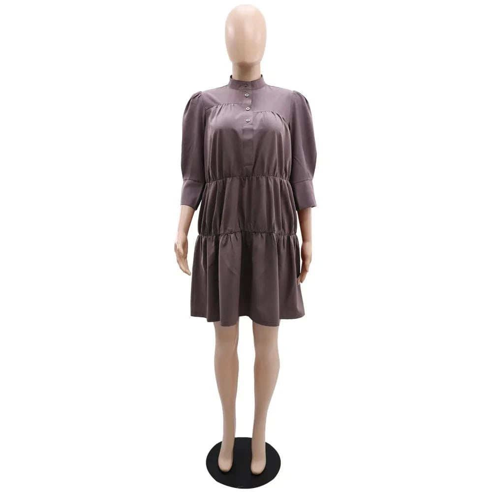 10246 New Arrival Women's Clothing Fall Shirt Dress High Neck Solid Color Loose Long Sleeve Women Midi Large Swing Dress