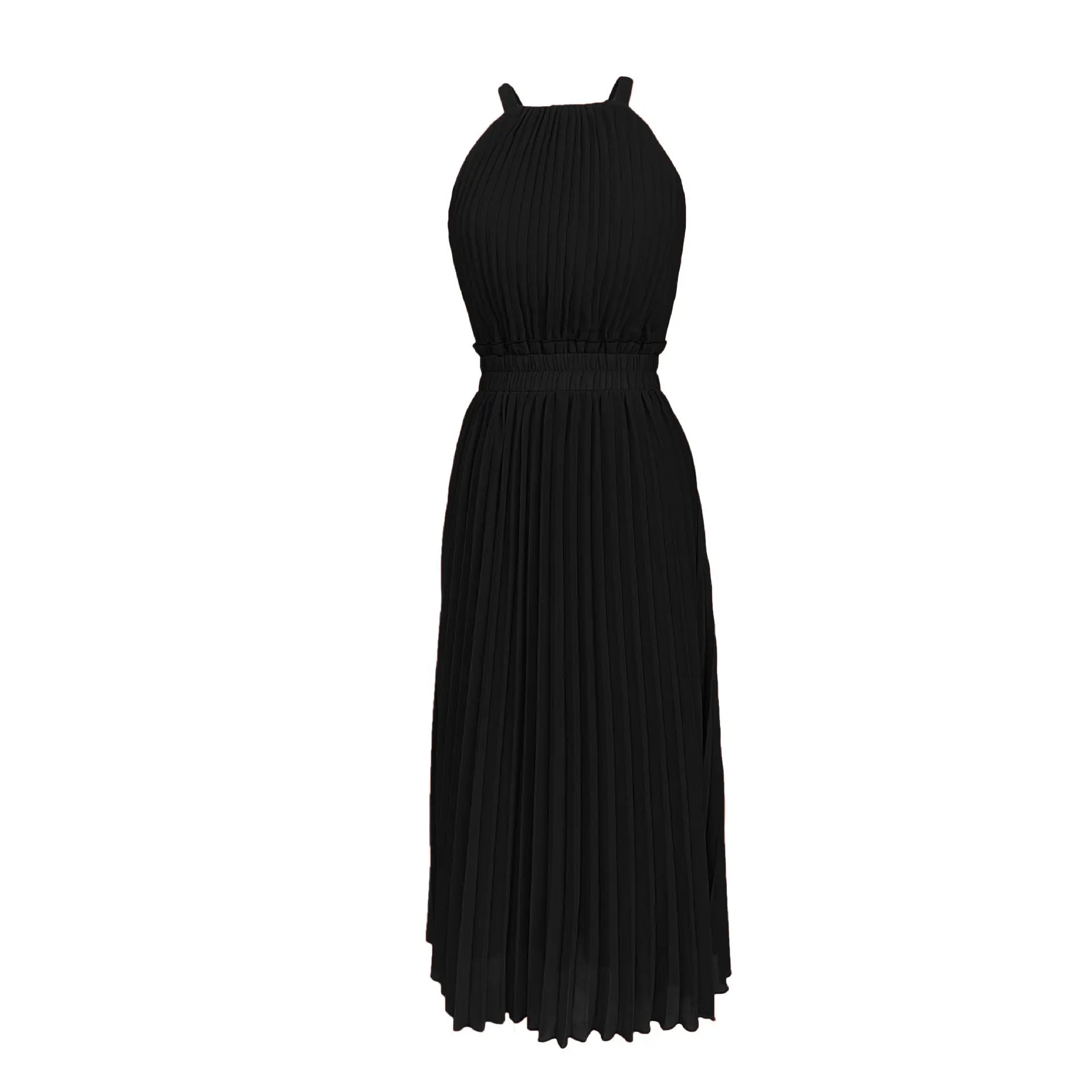 10278 Solid color sleeveless chiffon temperament lady spring summer pleated waist dress