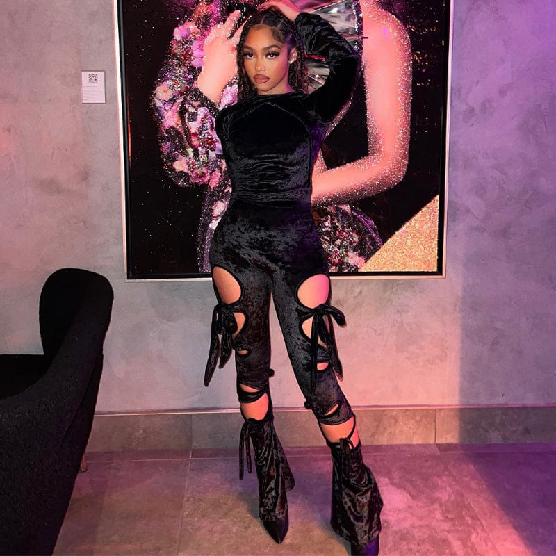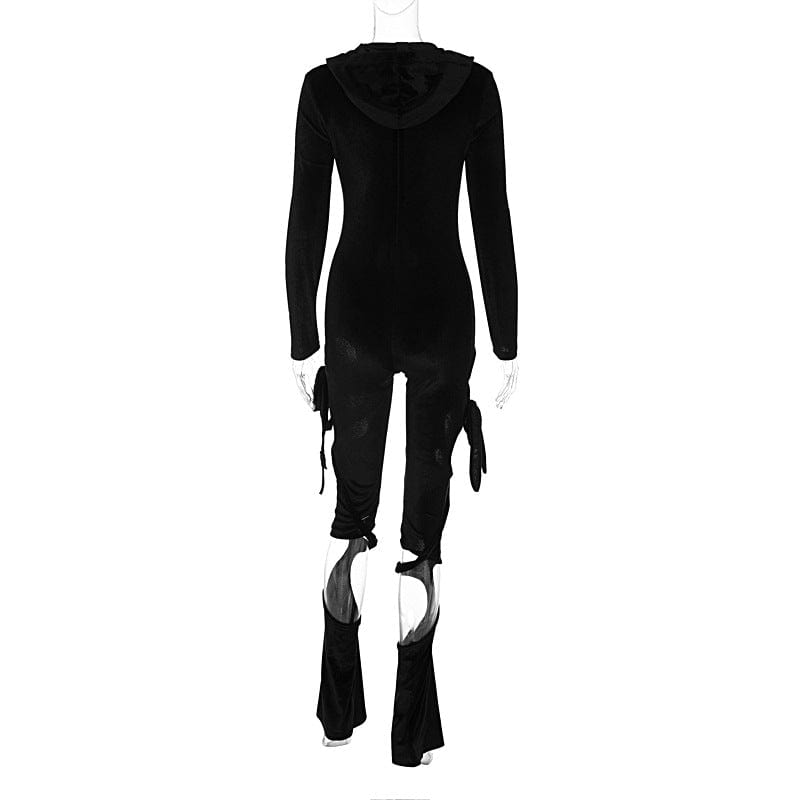 1037 Velvet Long Sleeve Hollow Out Hole With Hat Sexy Winter One Piece Jumpsuit 2022 New Arrivals Party Club Casual Clothing
