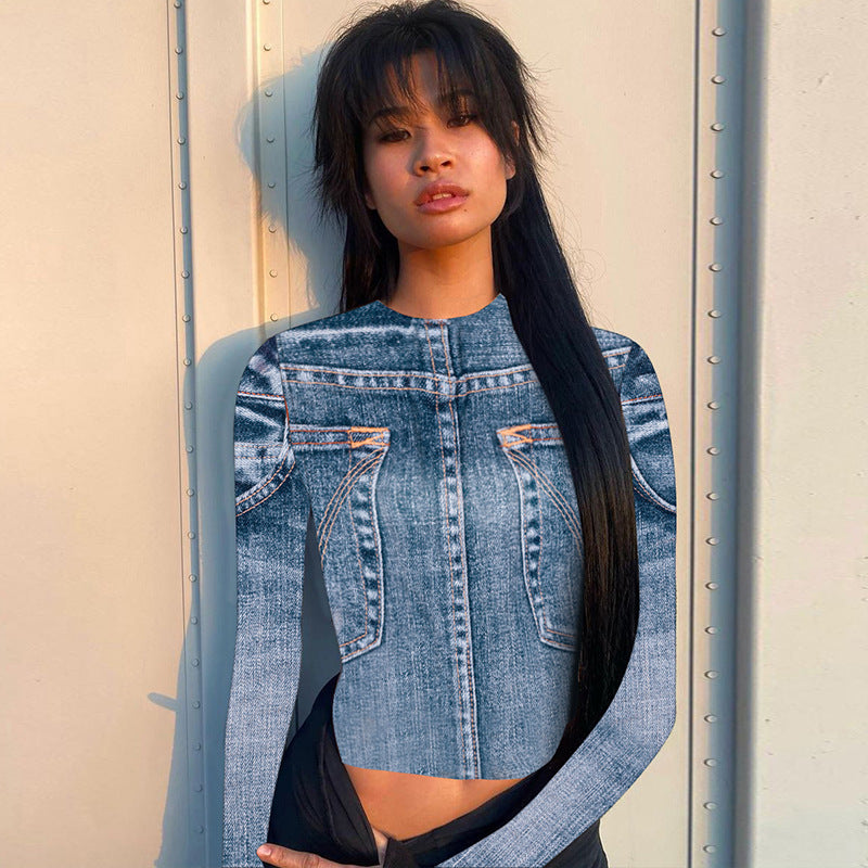 10657 O Neck Long Sleeve High Waist Tie Dye Print Tube Crop Top T Shirt 2022 New Fashion Wholesale American Clothing Casual