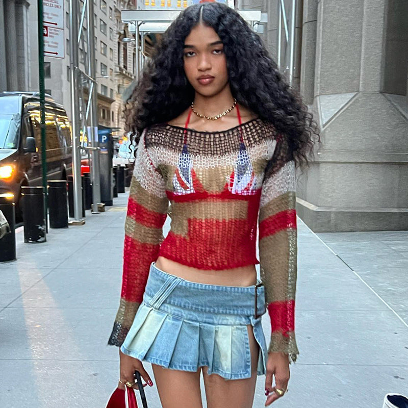 10682 O Neck Knitting Long Sleeve Hollow Out High Waiat Backless Colorful Sweater New Fashion Winter Wholesale Clothes