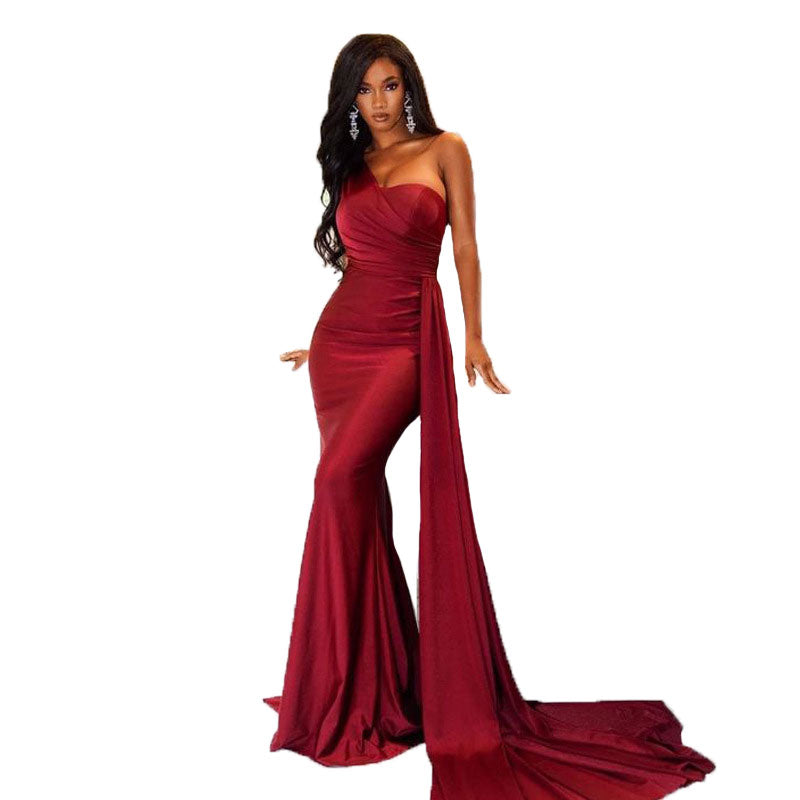 10717-SW66 solid color one shoulder ball gown wedding party elegant evening dresses long for women sehe fashion