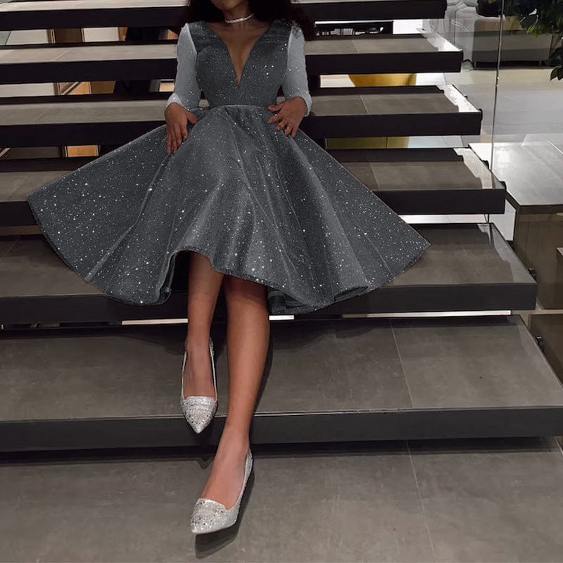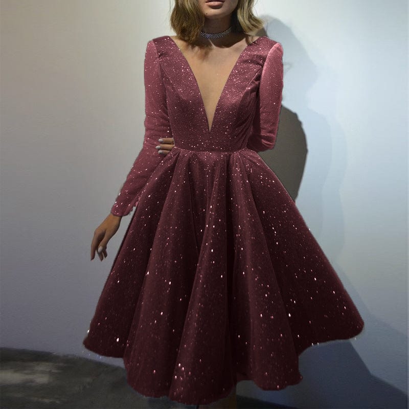 new sequin long sleeve deep-v sexy evening gown dress elegant party for women sehe fashion
