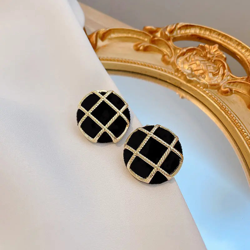 14k Gold Vintage Plaid Round Stud Earrings Plaid Light Luxury Dainty Party Wedding Jewelry Earring