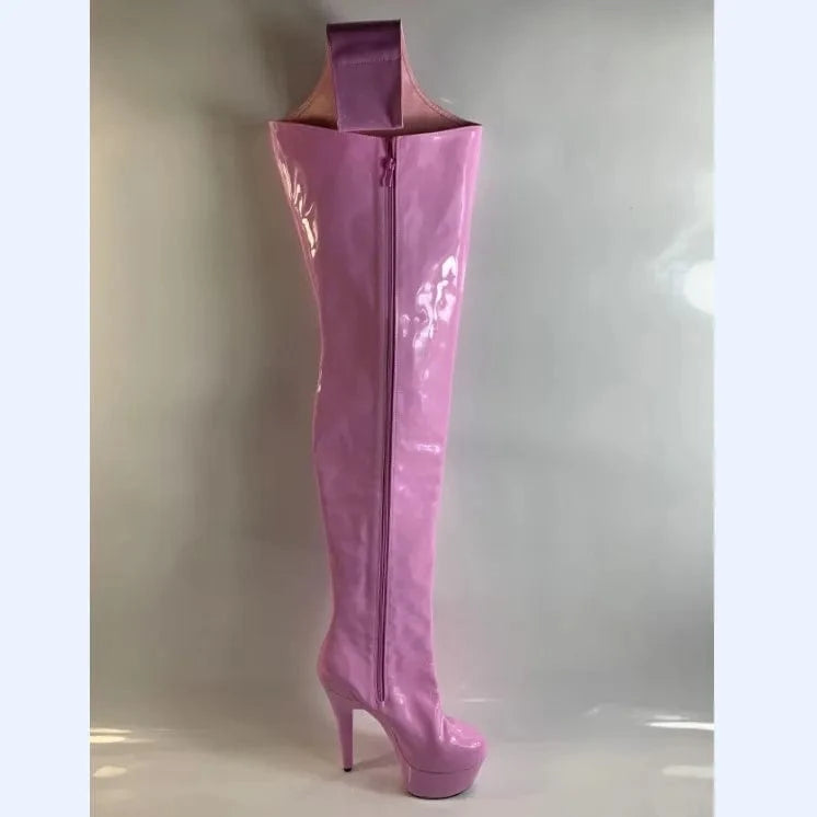 15 cm the pink high with knees and the waist boots nightclub dance fashion models show sexy jumpsuits boots shoes