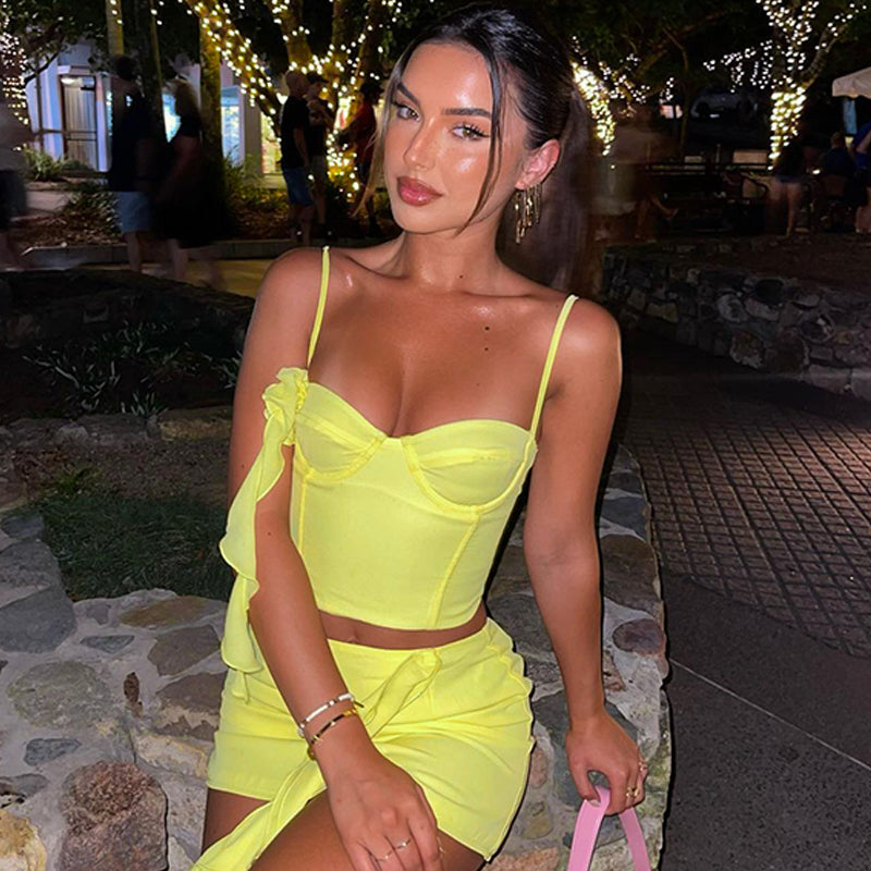 1540 Sleeveless Floral Tassel High Waist Corset Top Mini Skirt Women'S Sets 2023 Elegant Spring Party Evening Casual Clothes