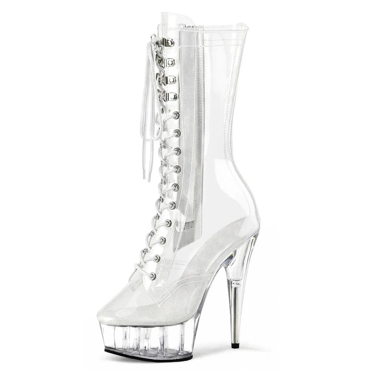 15cm New Style Lace Up Transparent Ankle Boots Stripper Heels Sexy Fetish 6Inches Pole Dance Shoes Gothic Nightclub Models Show
