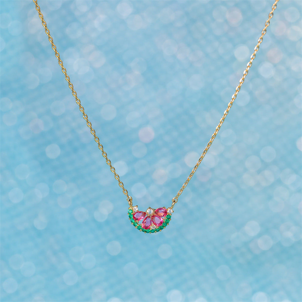 18 K Gold Brass Small Dainty Watermelon Pendant Necklace Fashion Fruit Element Summer Style Pendants Jewelry For Women Girl