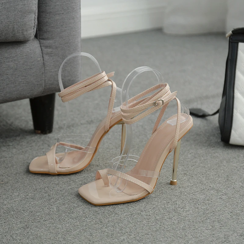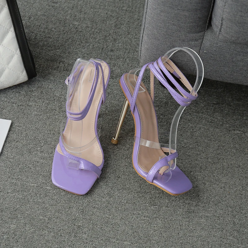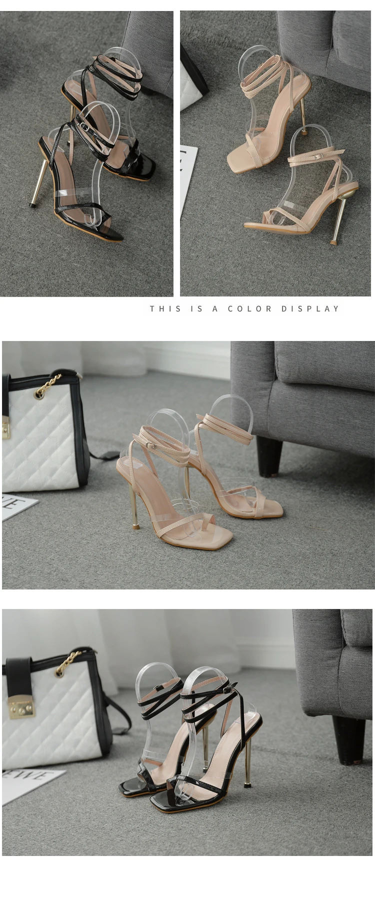2024 European and American new transparent color matching electroplating heel high heel toe Sandal NEW