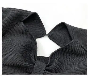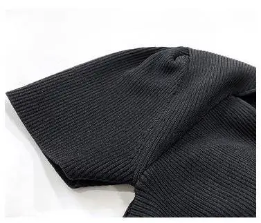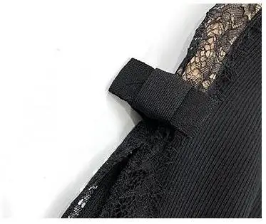2024 Lady Sexy Hollow Out Lace Patchwork Stitching Slim Fitted Women Bow Bust Short Sleeve Midi Solid Knit Black Dress