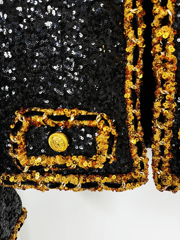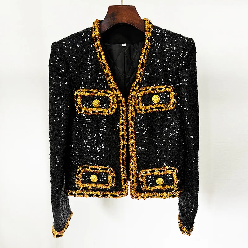 2024 Newest Lady Fine Workmanship All Over Sequins Coat V-neckline Long Sleeve Women Fashion Shinny Short Jacket