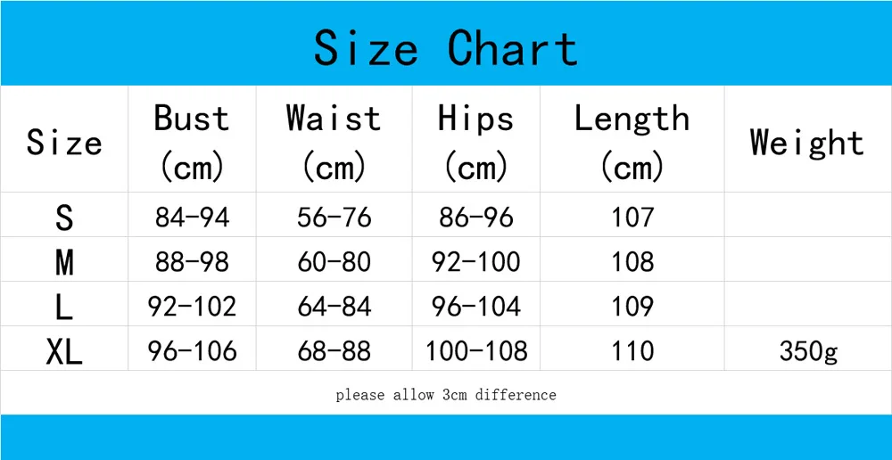 Note: Please compare your body measurements with our size chart before order! 1: 1inch=2.54CM, 1CM=0.39inch,Take below Size Conversion Chart as reference. 2: All the size is provided for your reference, 1-3cm error should be accepted.