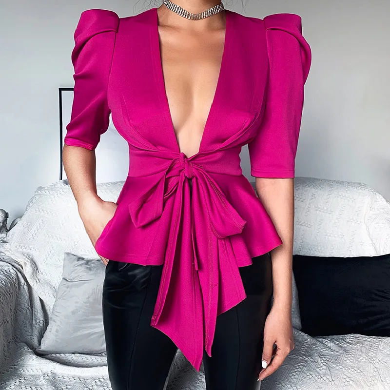 Summer Fashion Office Satin V Neck Shirts Short Sleeve Elegant Casual Blouse For Women