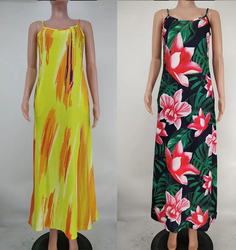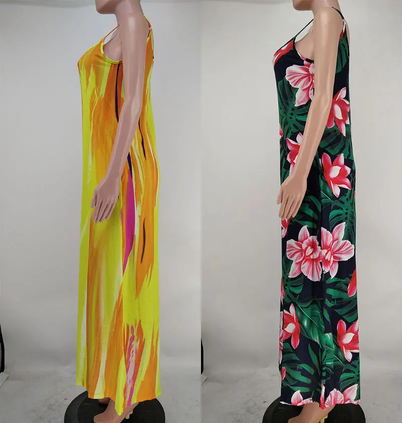 2024 Summer Sexy Fashionable Floral Clothes Tie-Dye Multicolored Print Halter Loose Dress Women Maxi Long Dresses