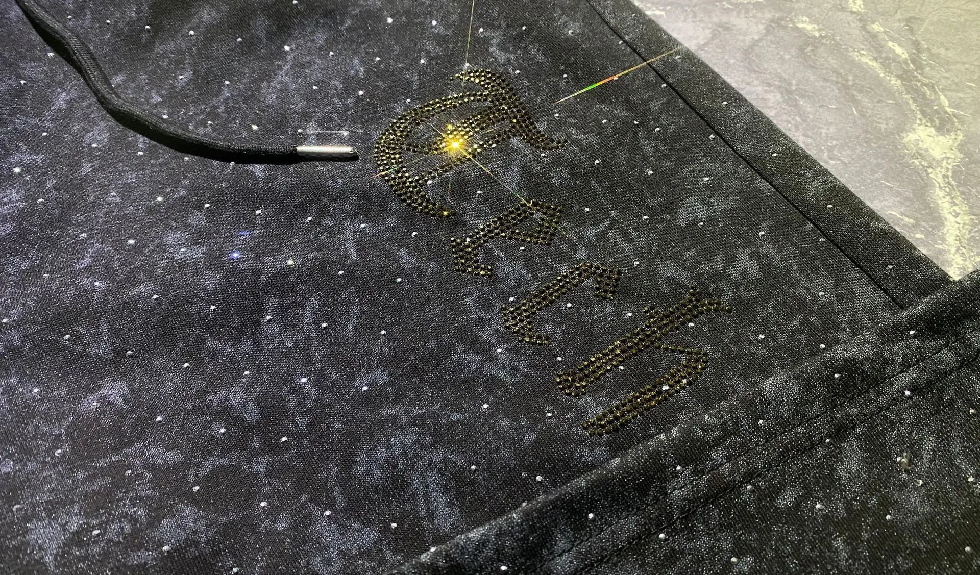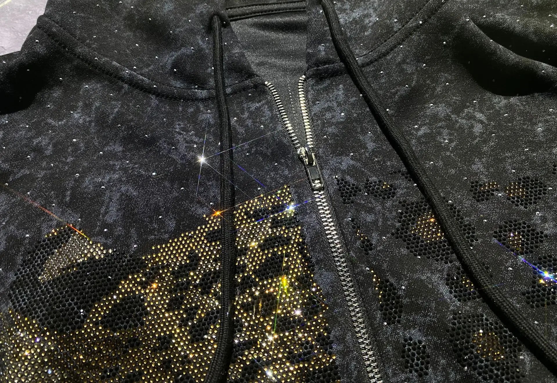 2025 Autumn Tie-dye Zipper Hooded 2 Piece Sets Woman Casual Sequins Oversized Straight Pant Sets Vestidos Sportsuits Bust 130cm