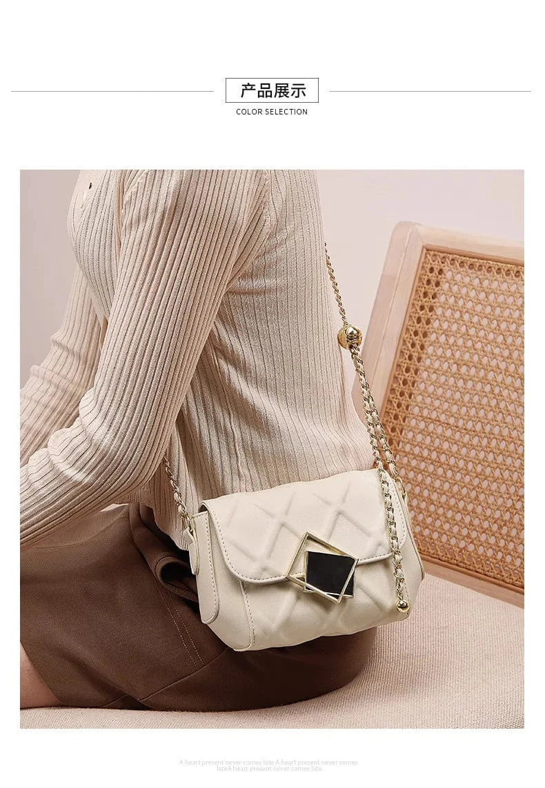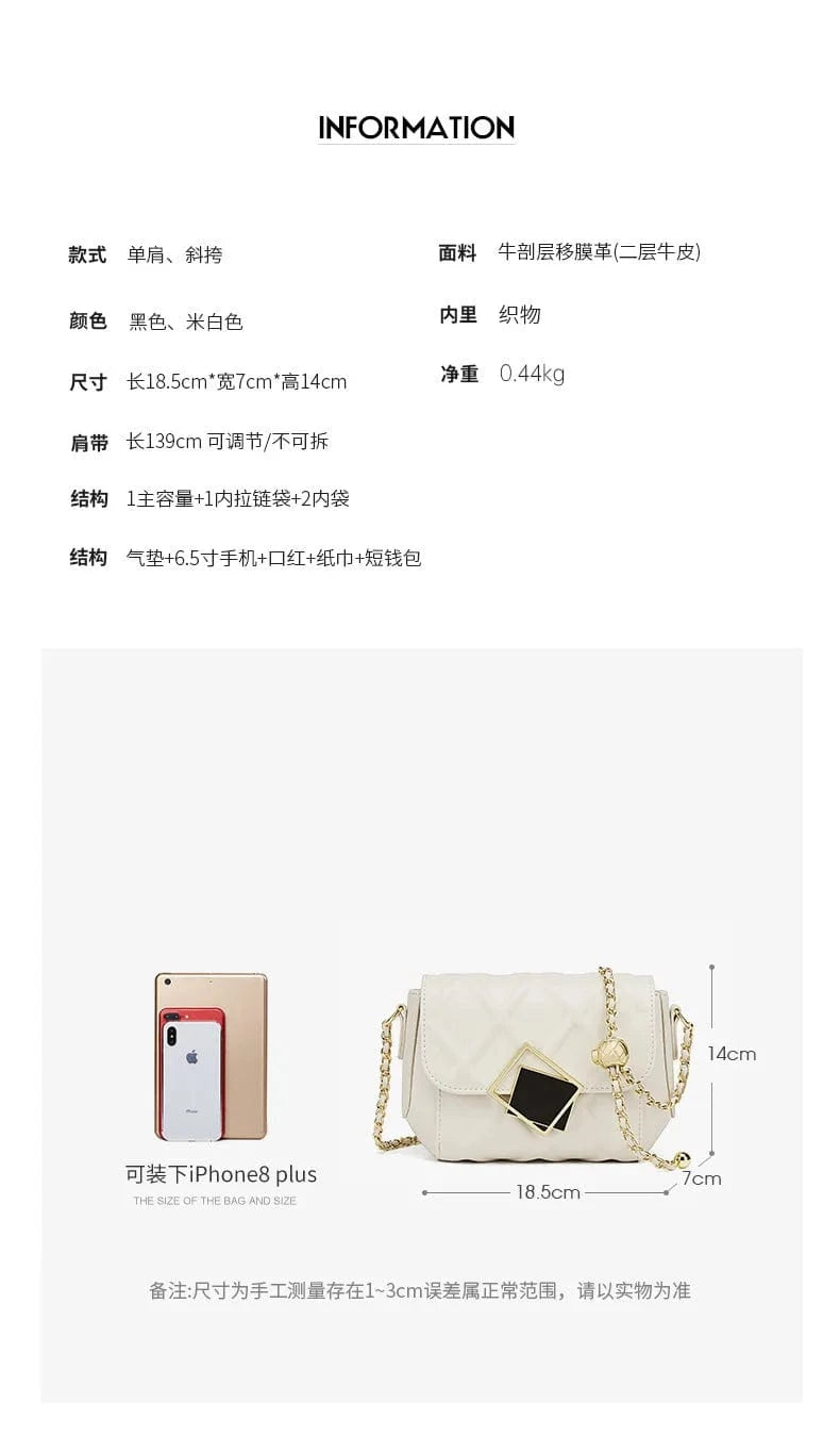 2025 Genuine Leather Shoulder Bag - Women's Quilted Crossbody Purse with Gold Ball Chain, European Style