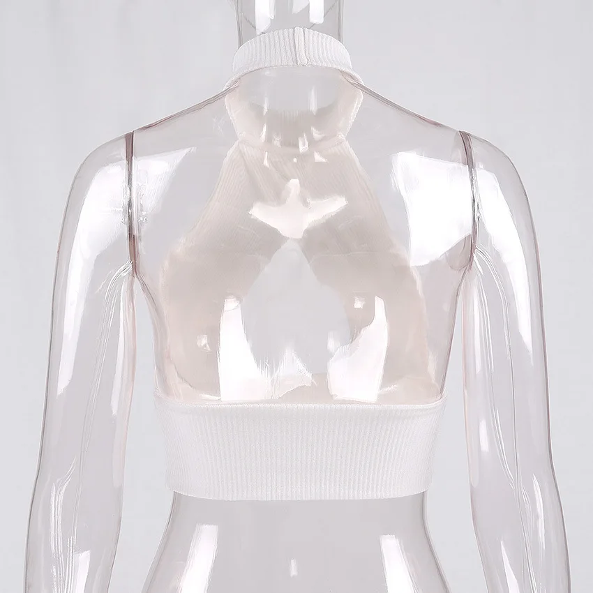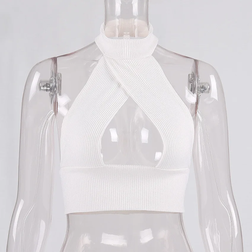 70% COTTON 30% POLYESTER Sexy Plain Wrap Backless Stretch Turtleneck Party Crop Top 2022 Slim