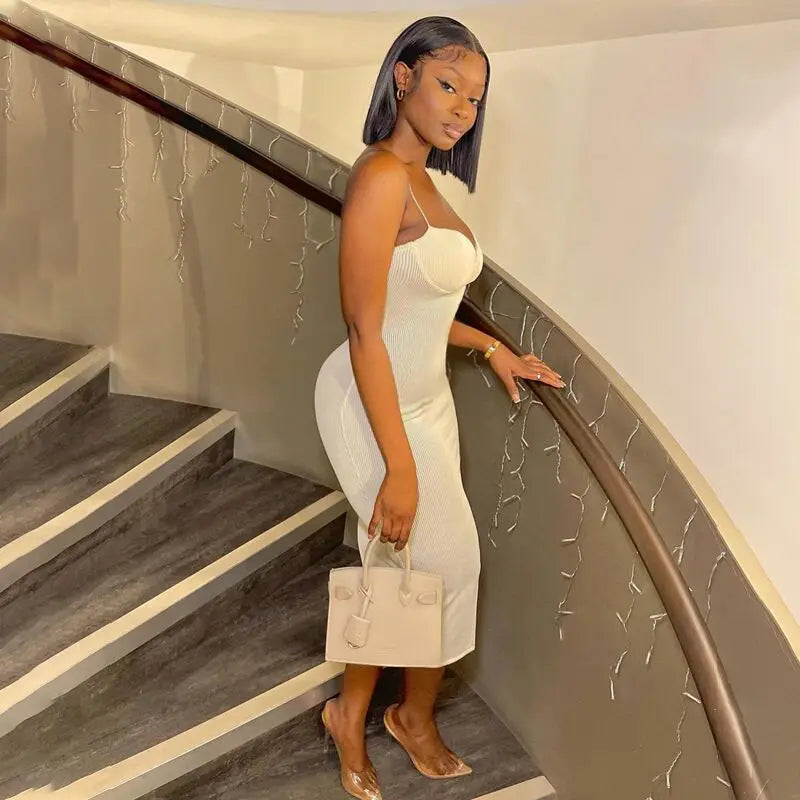 A fashionable solid-color, form-fitting and hip-hugging dress for European and American women