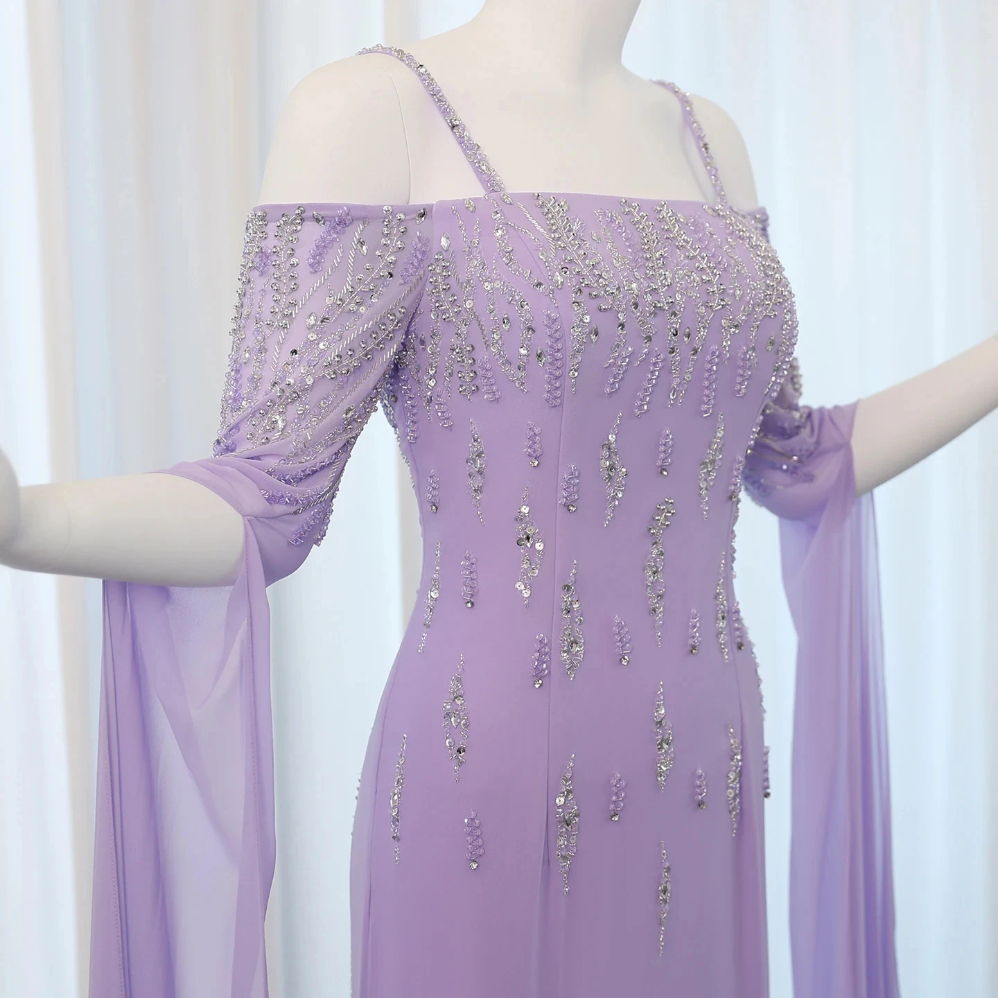 Arabic Lilac Mermaid Evening Dress with Cape Sleeves 2024 Luxury Dubai Beaded Women Wedding Formal Party Gowns SZ408