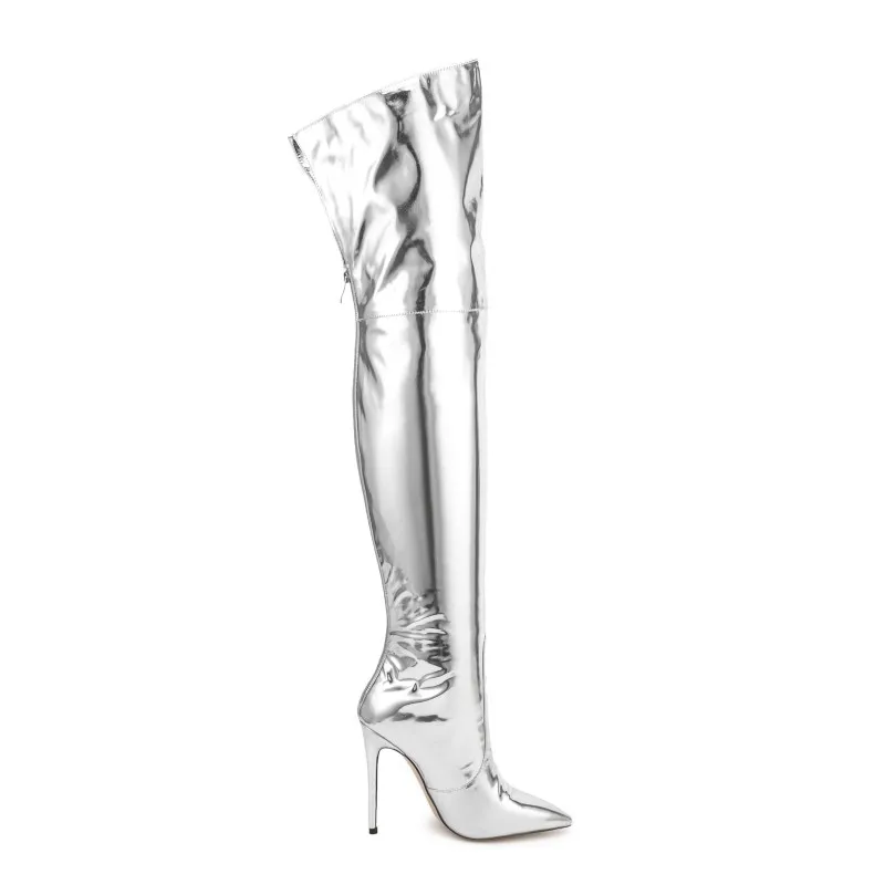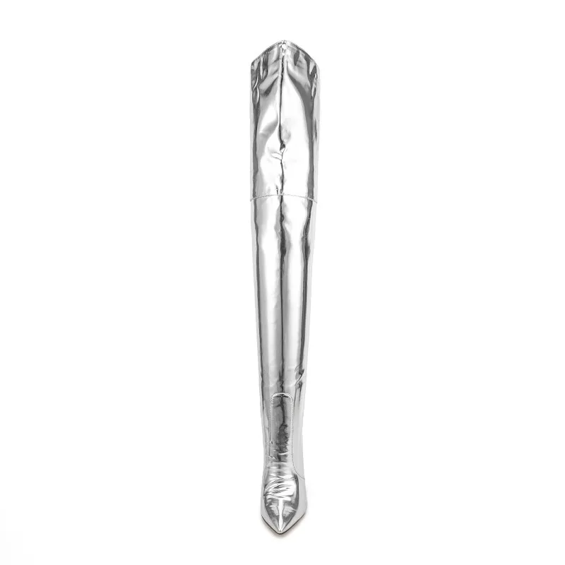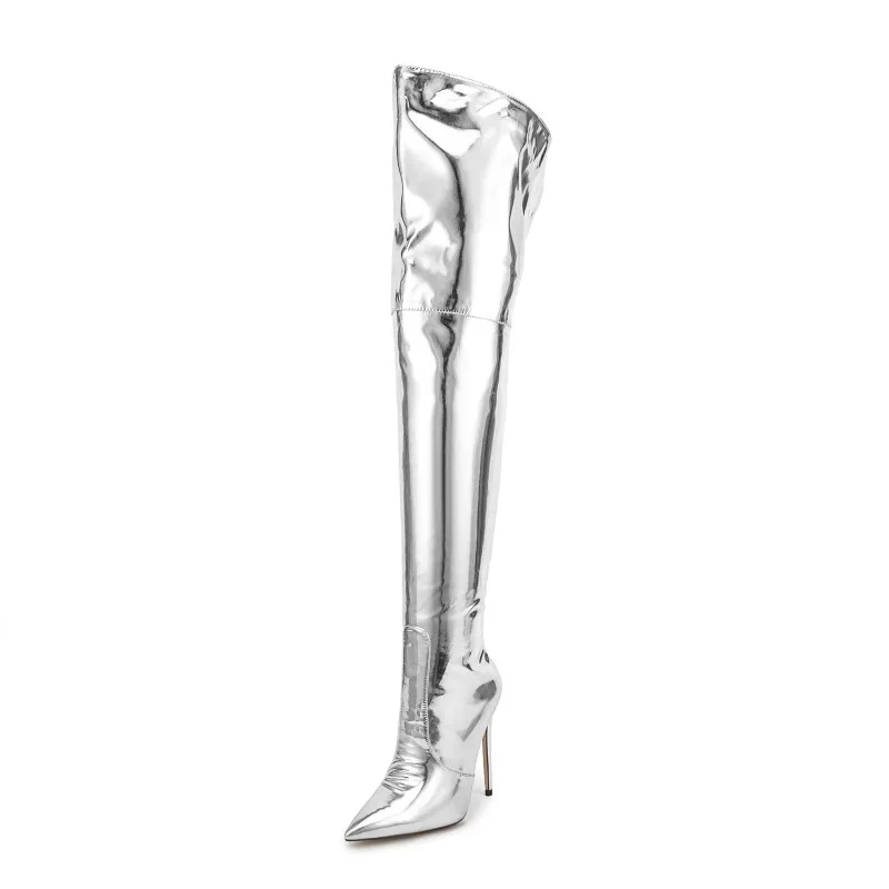 Banquet Botas 2023 Hot Selling Metallic Shoes Women Mirror Leather Pointed Toe Stiletto Heels Long Boot Over Knee High Boots