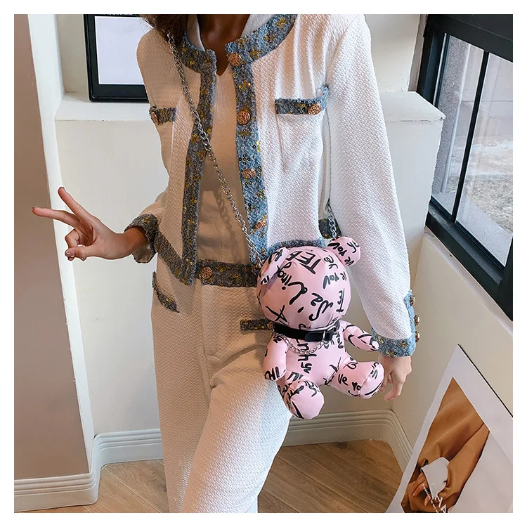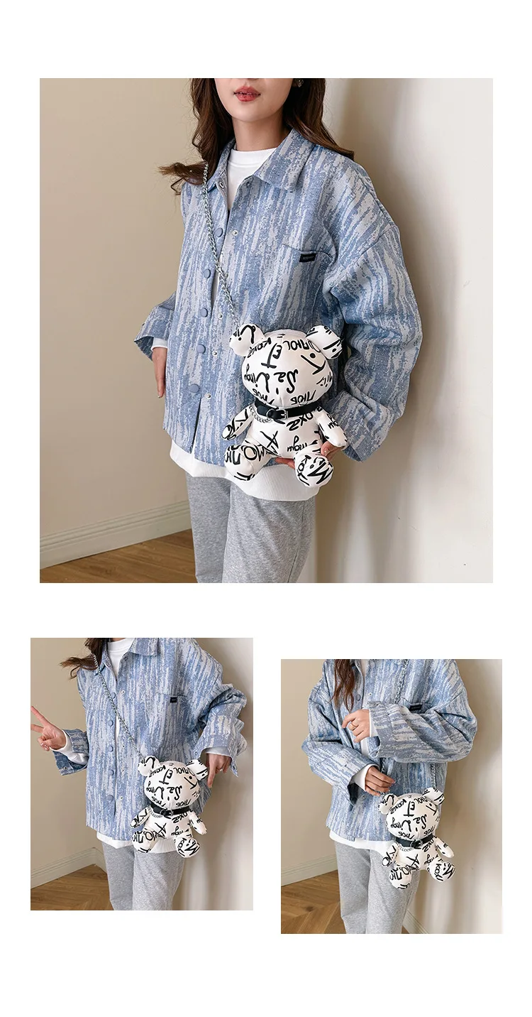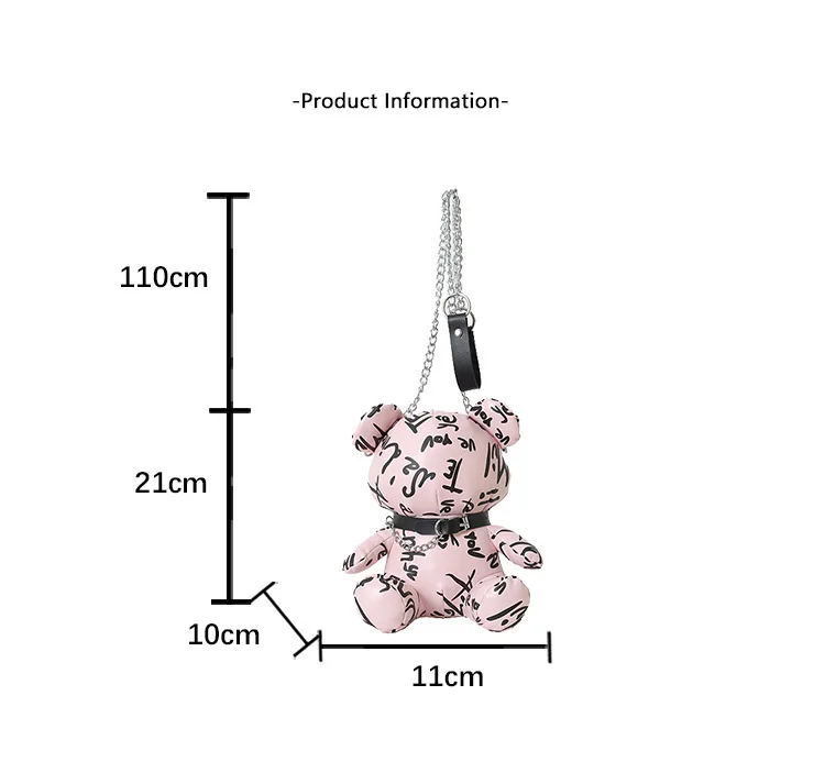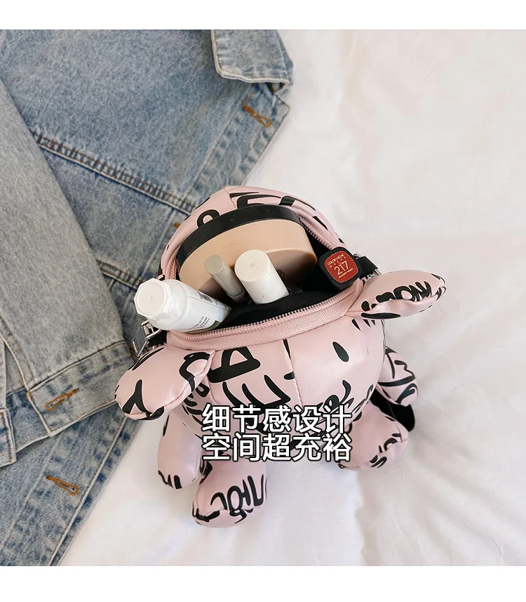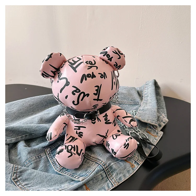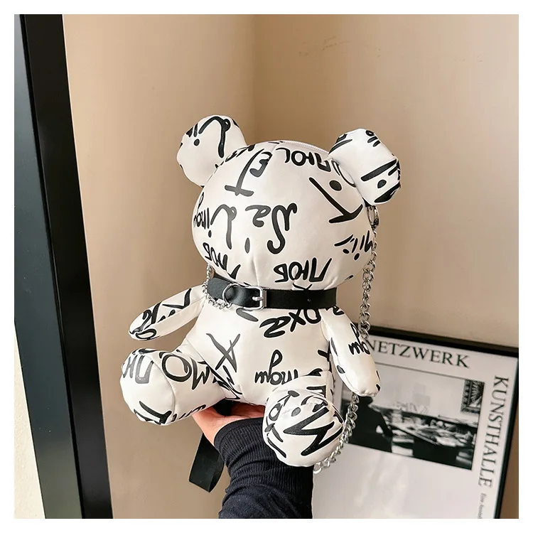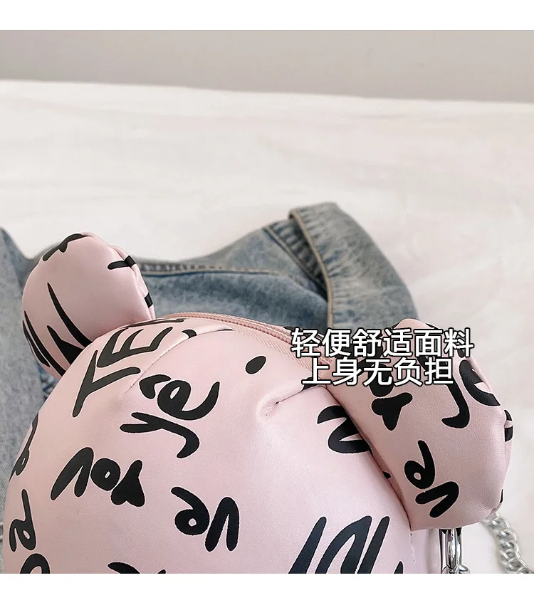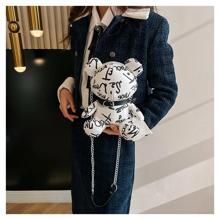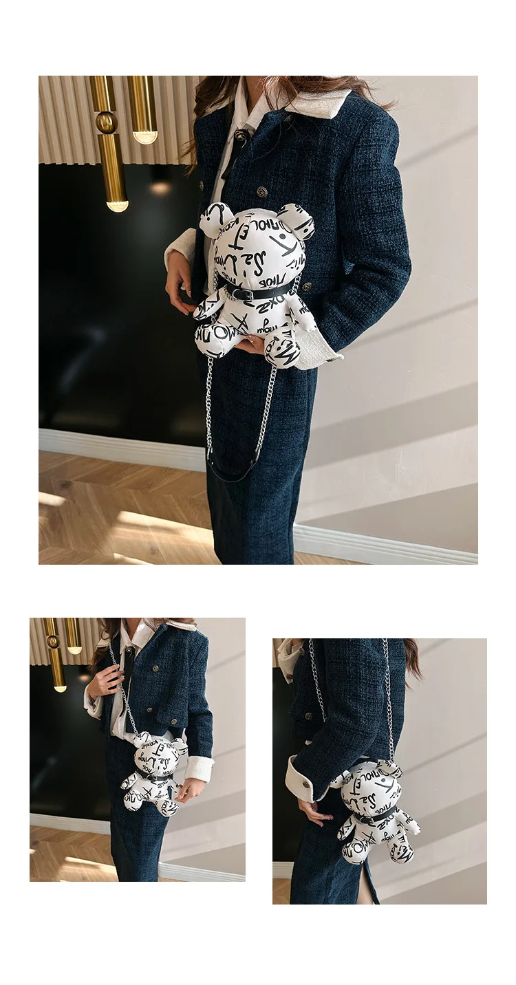 Bear Shape Crossbody Bag For Women Letters Printed Cute Fashion Doll Shoulder Bags Chain Animal Handbag Party Pocket Mini Purse