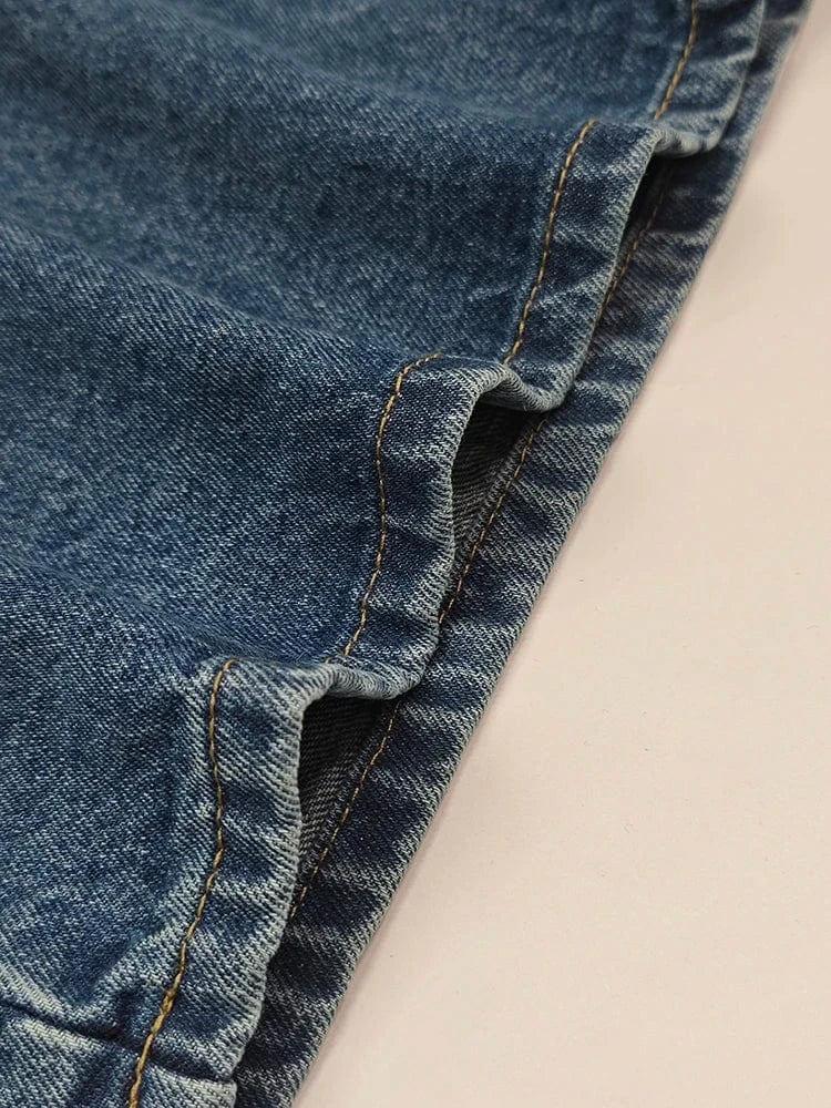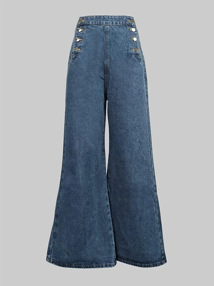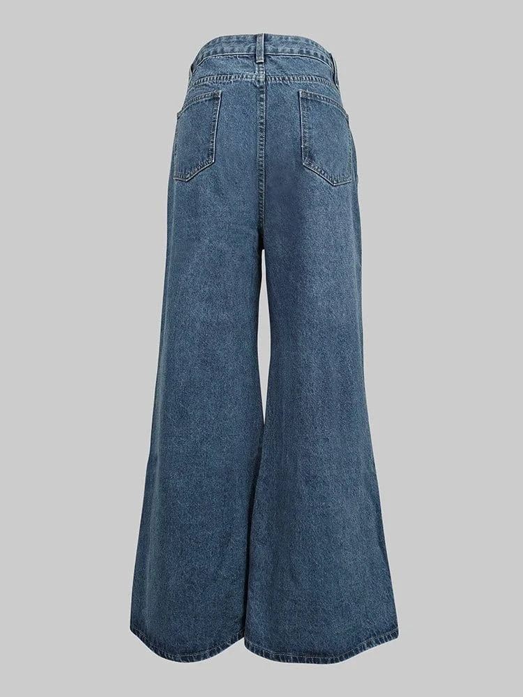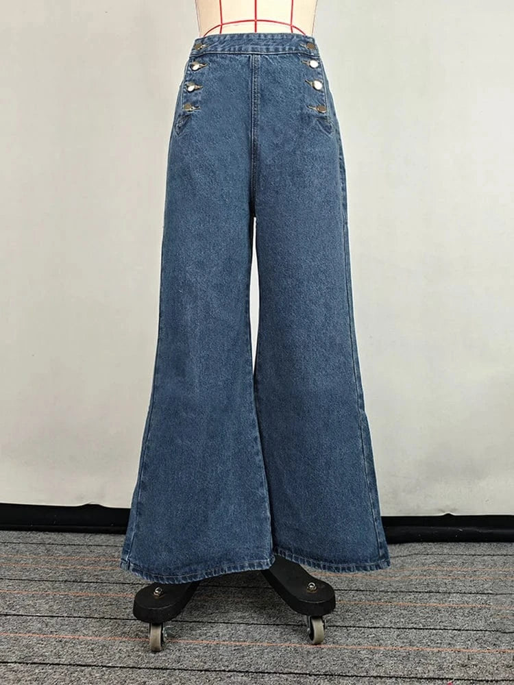 Beautyblue Fashion Women's Jeans Button Baggy Denim Jeans Pants High Waist Casual Classic Blue Wide Leg Trouser Female Y2K Punk
