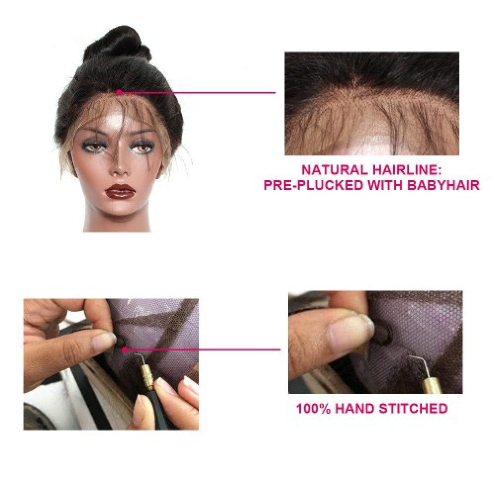 Body Wave 360 Lace Front Wigs Human Hair Pre Plucked Bleached Knots 360 Lace Frontal Wig Free Part 180% Density