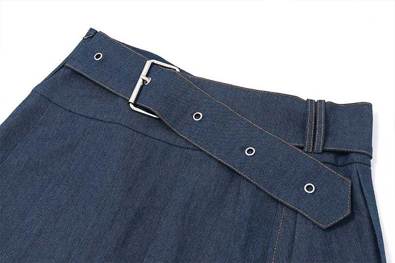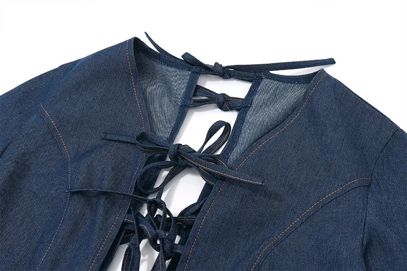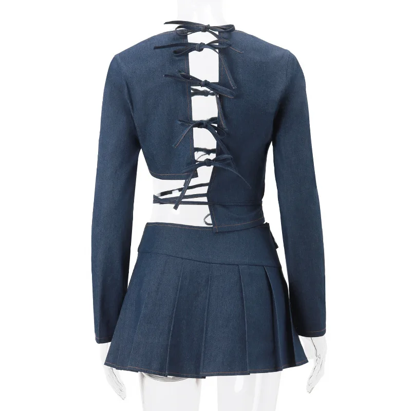 Bomblook C124ST New Design Denim Lace Up Crop Top With Pleated Skirt Suit Women Outfits 2 Piece Set Women 2024