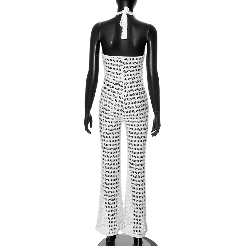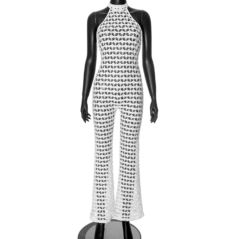 Bomblook K24JP047 Cut Out Sexy Knit Solid Halter One Piece Jumpsuit Women 2024 Summer Sleeveless Trends Women Jumpsuits
