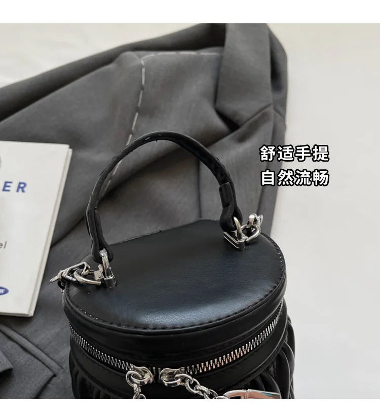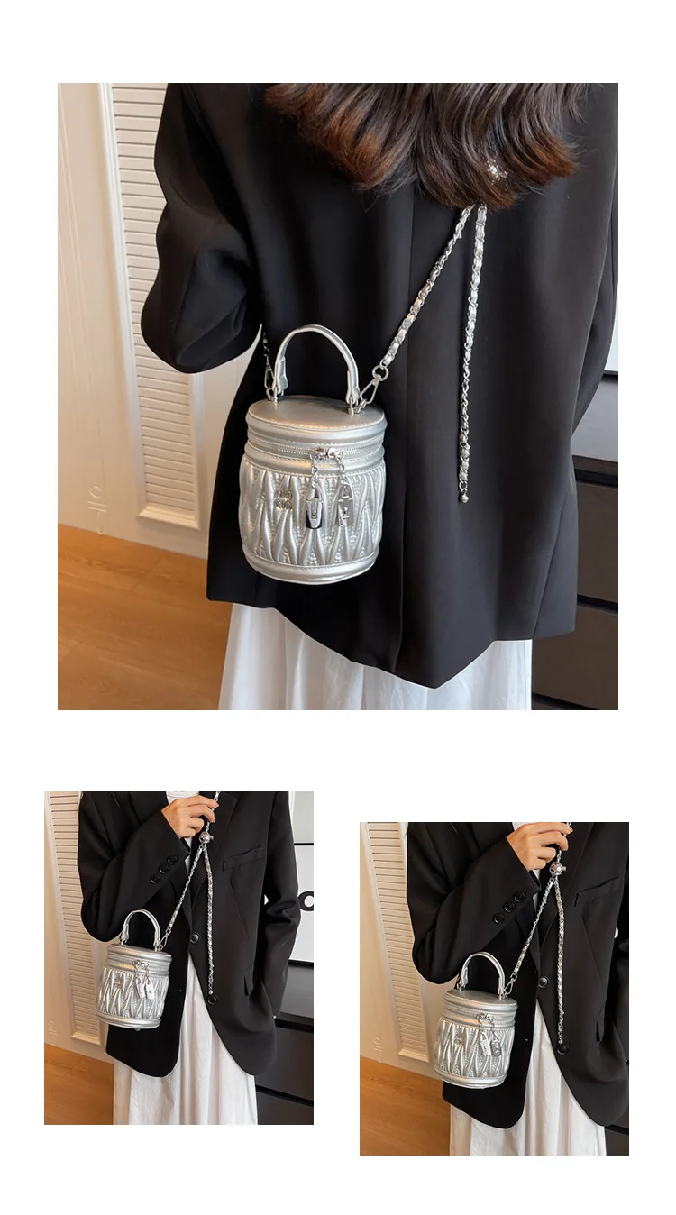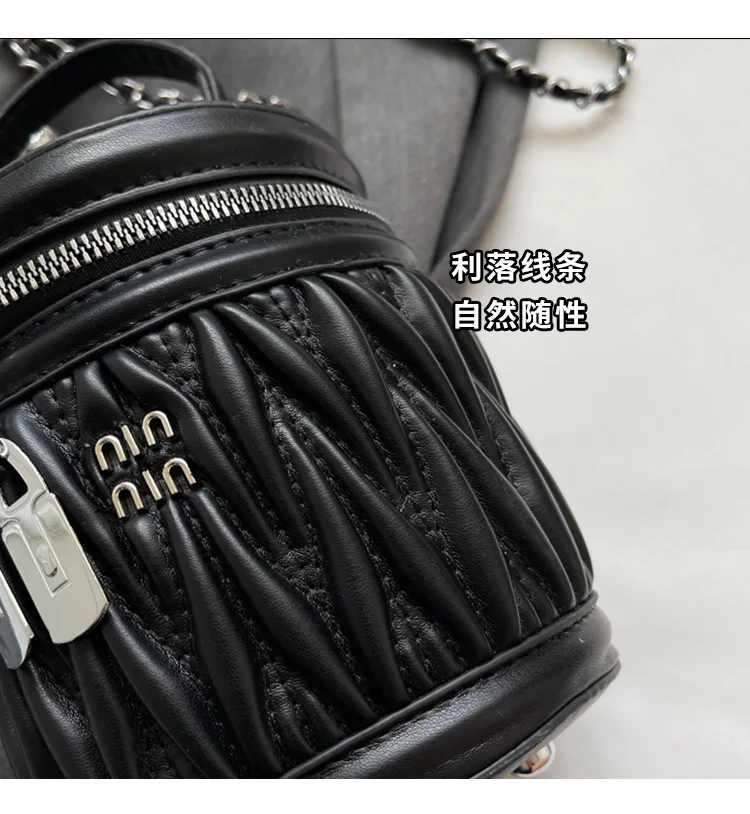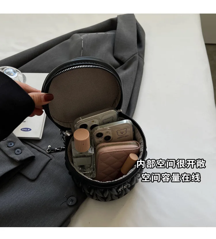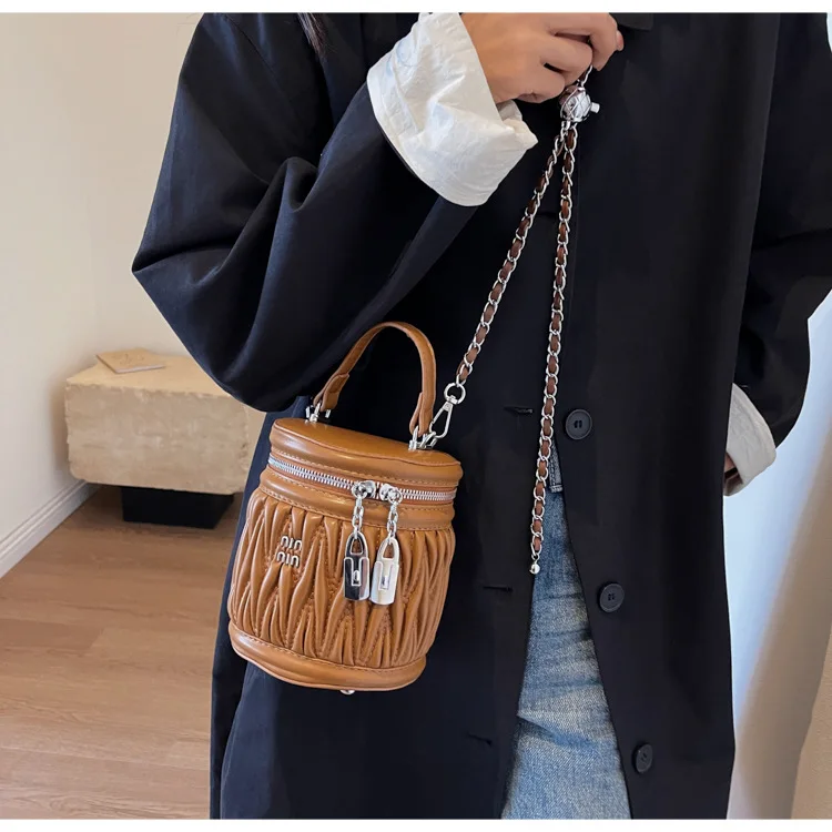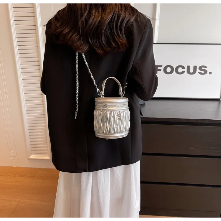 Brand New Fashion Pleated Embroidered Thread Bucket Ruched Luxury Shoulder Messenger Bag Women's Small Barrel Shaped Totes
