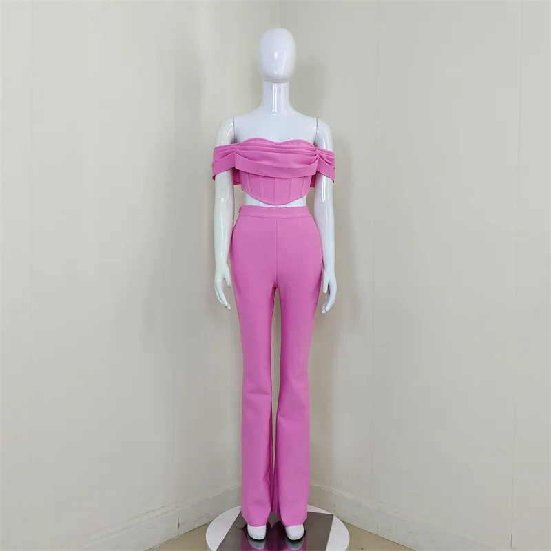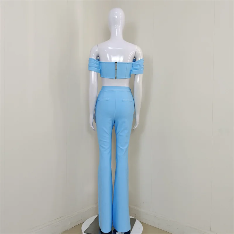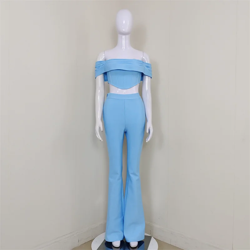 C2322 Wholesale Sky Blue Strapless Pencil Casual Women Two Piece Set 2024