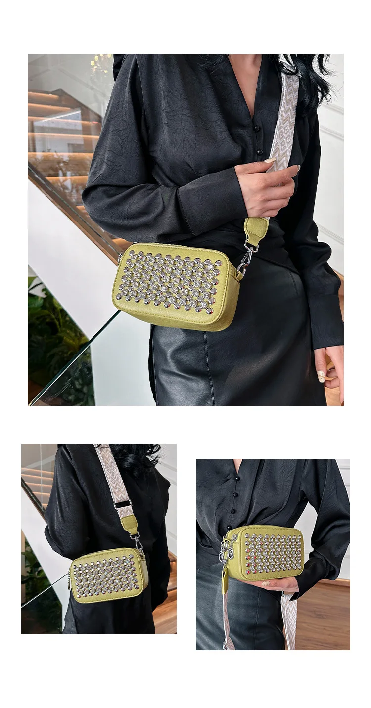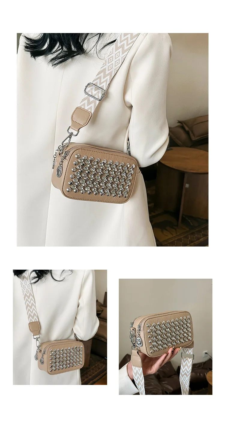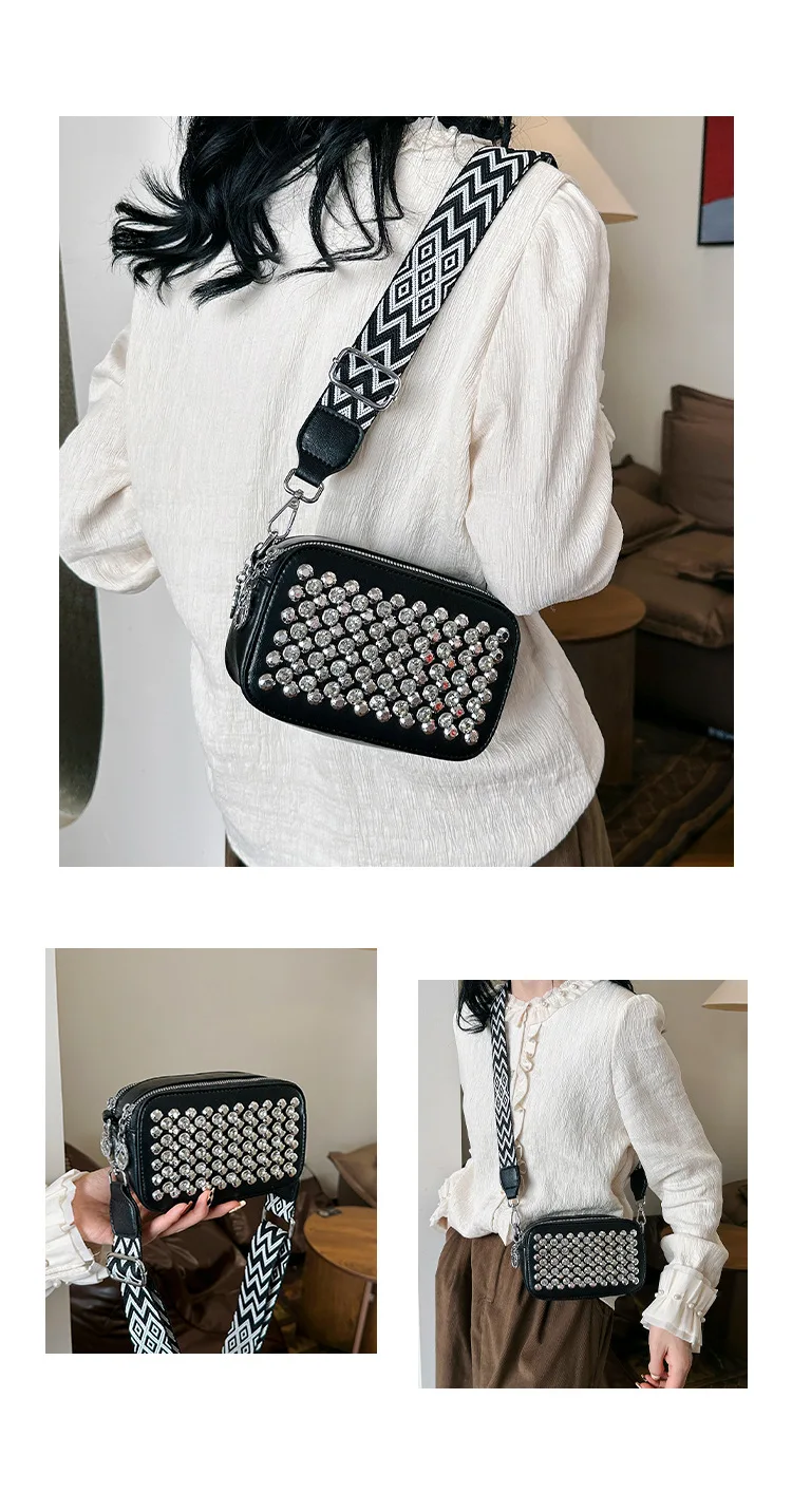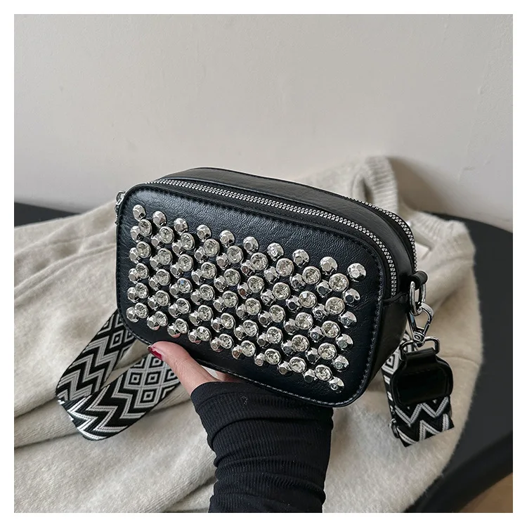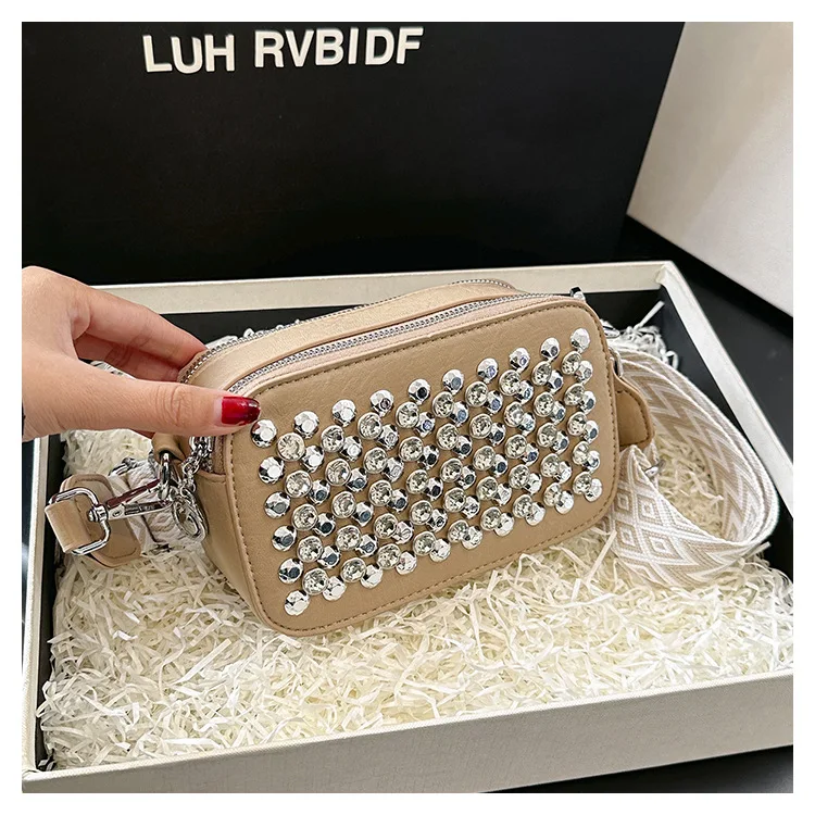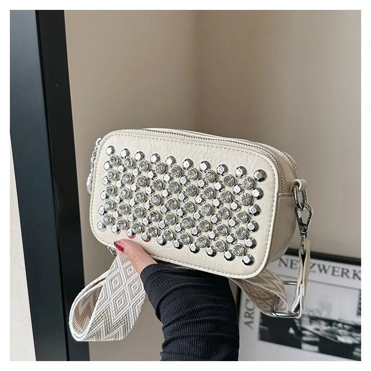 Camera Shaped Trend Rivets Rhinestone Square Bag Chain Shoulder Bag Luxury Design Shoulder Crossbody Bag Diamond Coin Purse