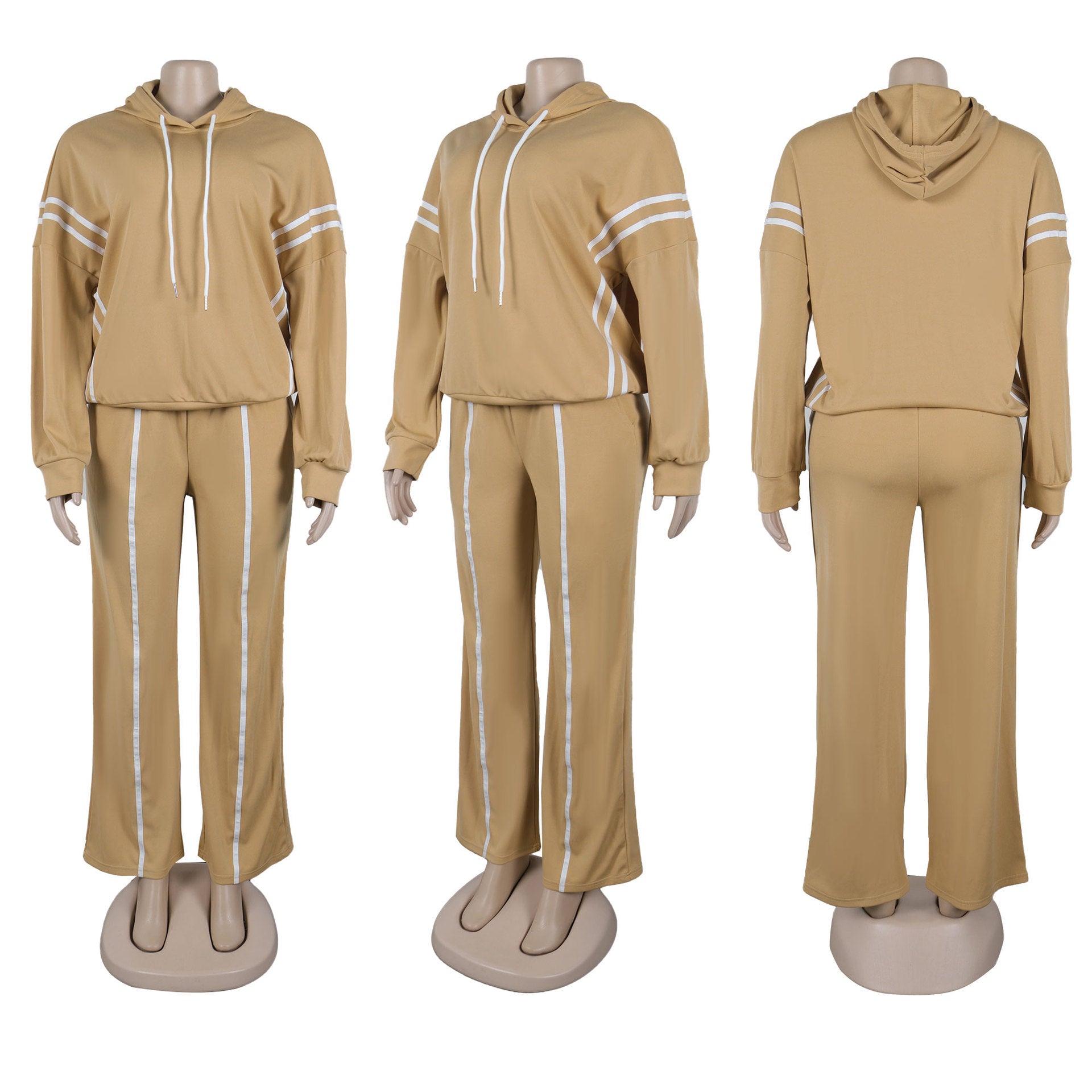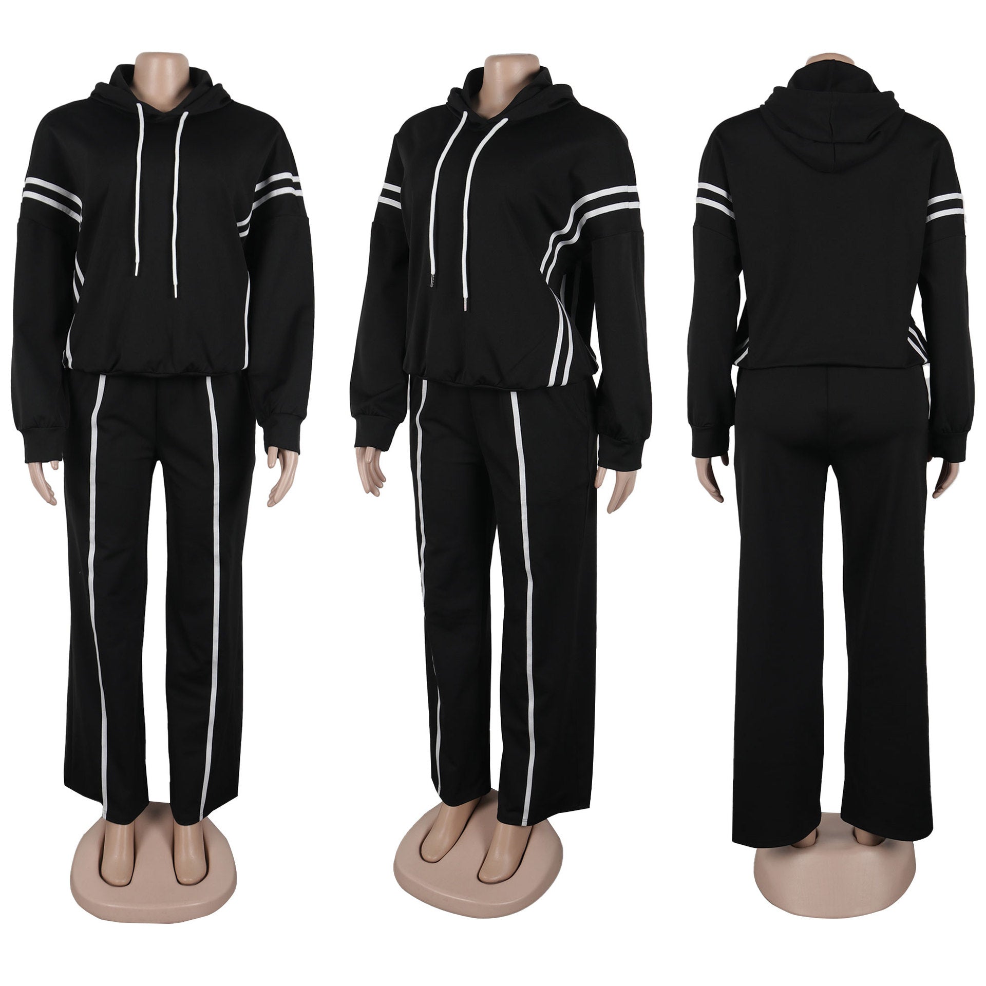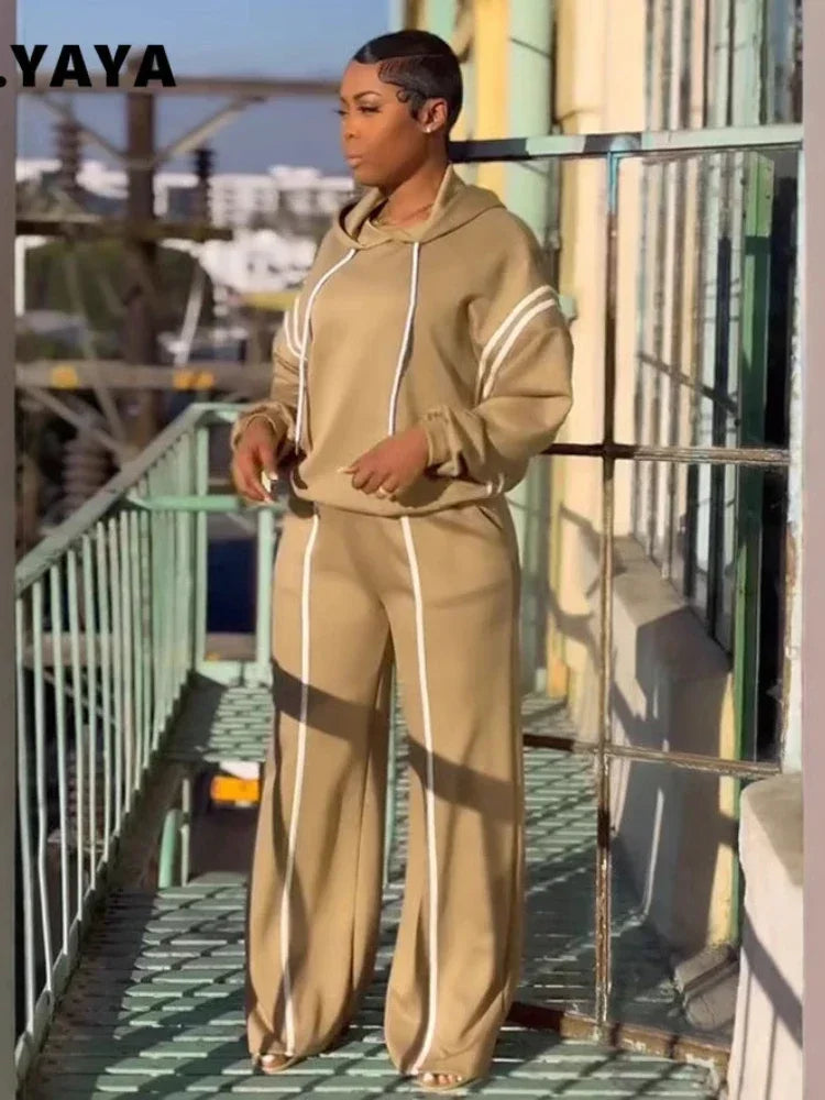 CM.YAYA Fashion Striped Splicing Women's Set Long Sleeve Hooded Sweatshirt and Sweat Pants Tracksuit 2024 Two 2 Piece Set Outfit