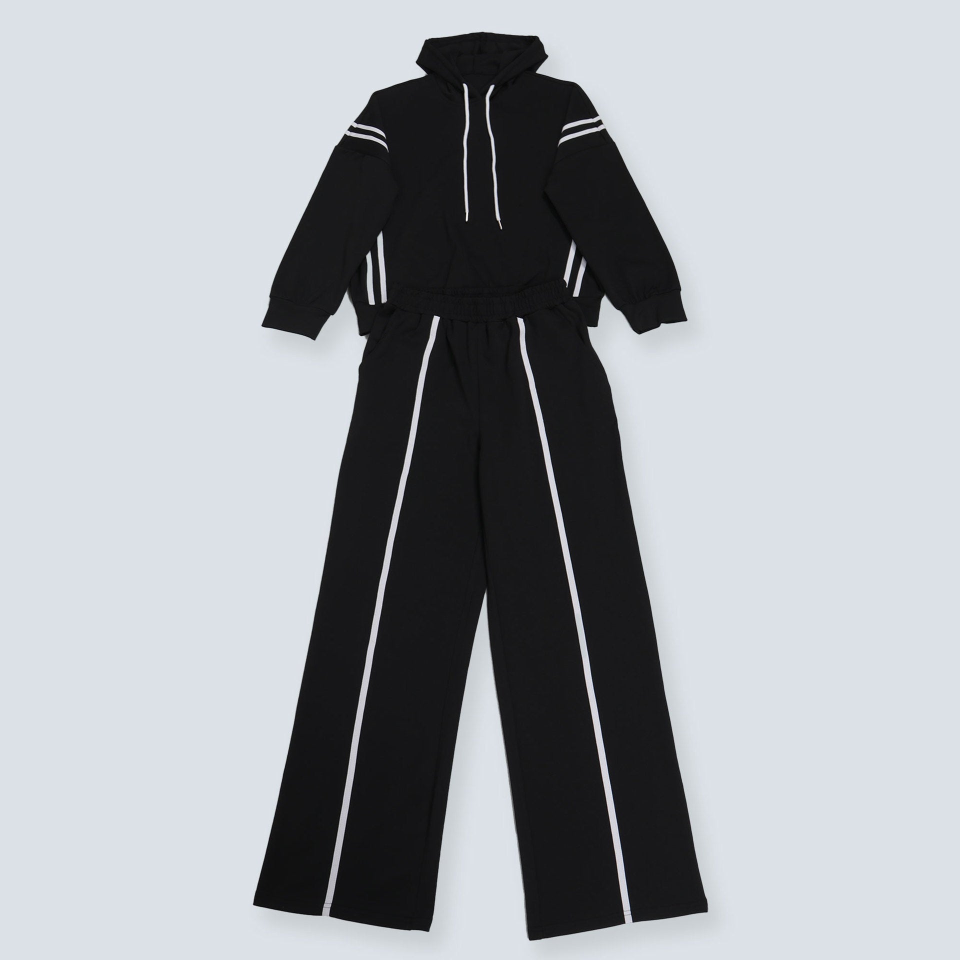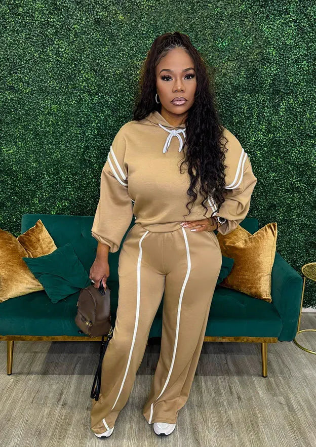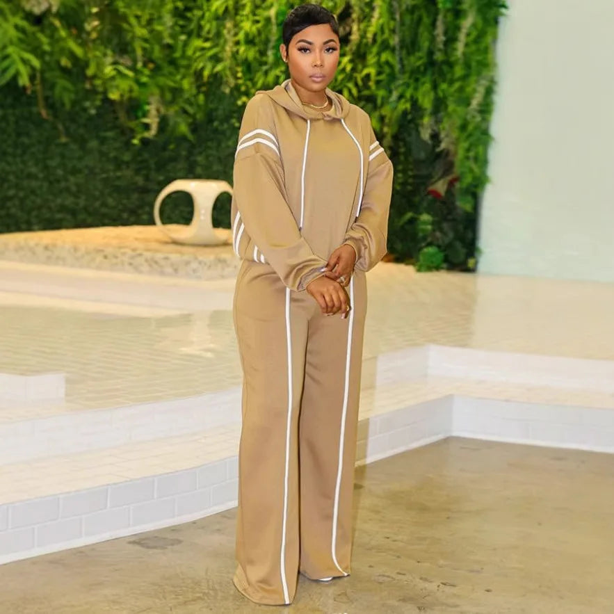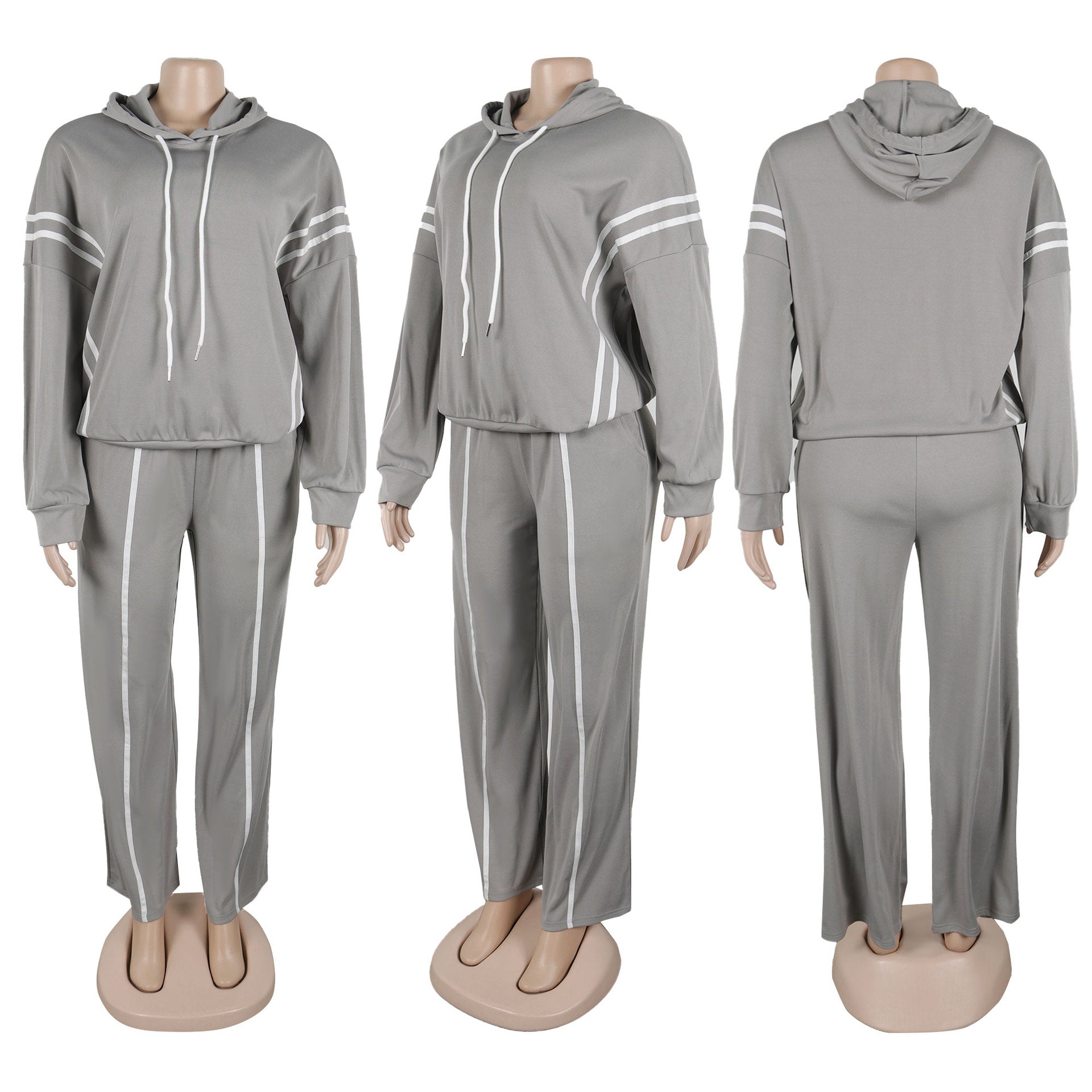 CM.YAYA Fashion Striped Splicing Women's Set Long Sleeve Hooded Sweatshirt and Sweat Pants Tracksuit 2024 Two 2 Piece Set Outfit