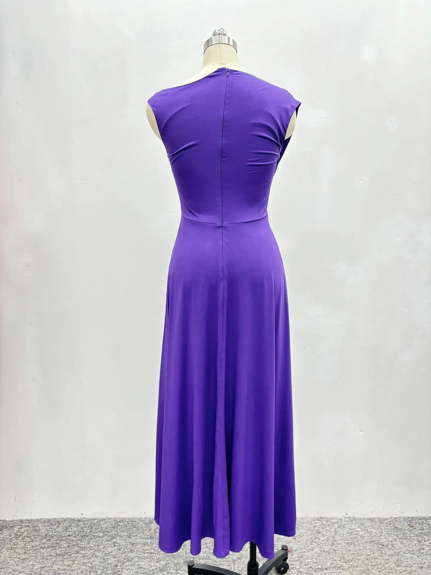 CM.YAYA Fashion Women Ruched Sleeveless High Side Split Maxi Dress Holiday Birthday Sexy Night Club Party Street Long Dresses