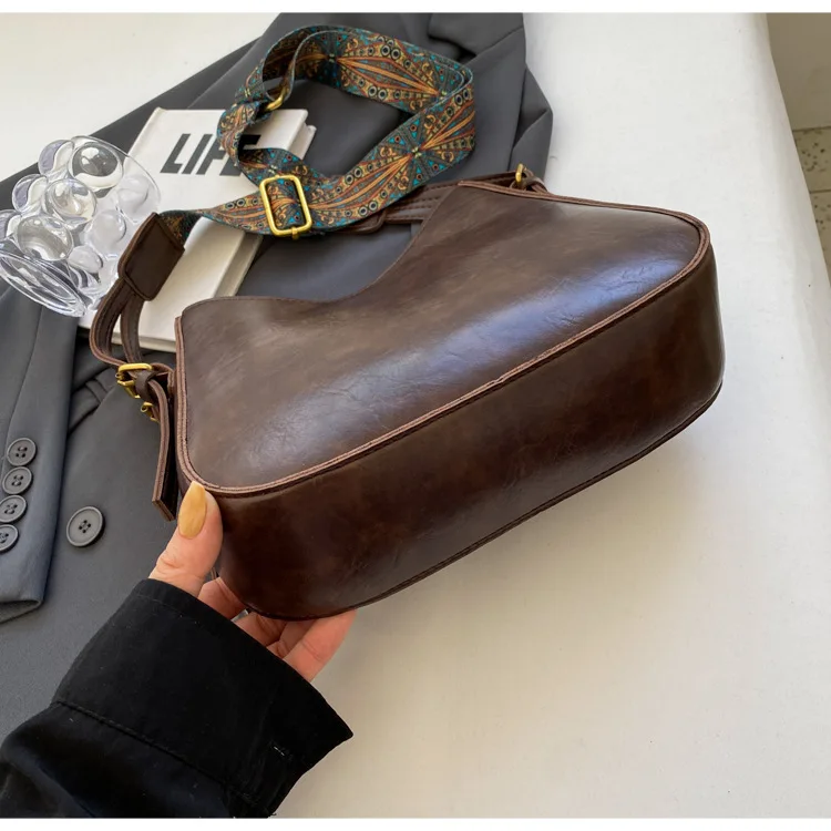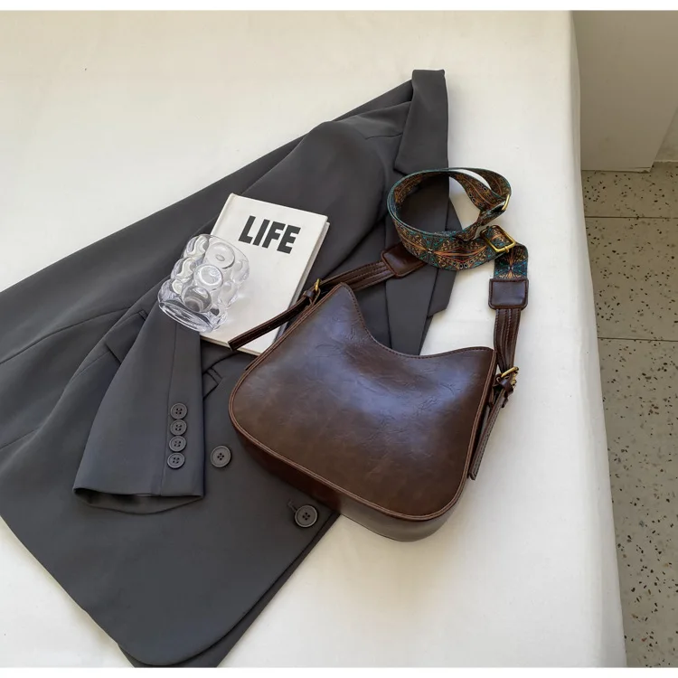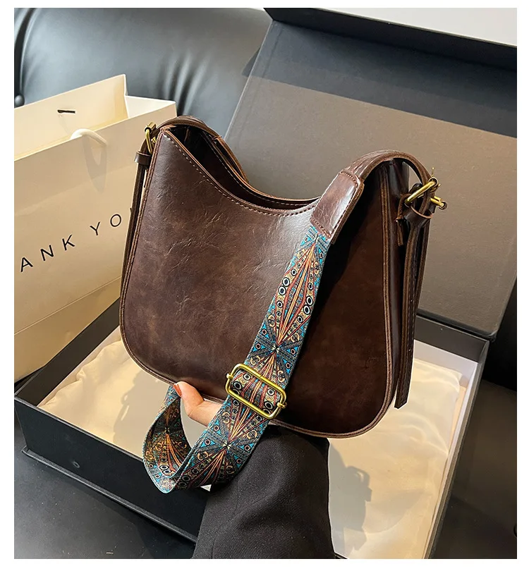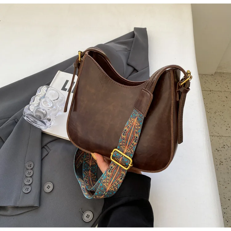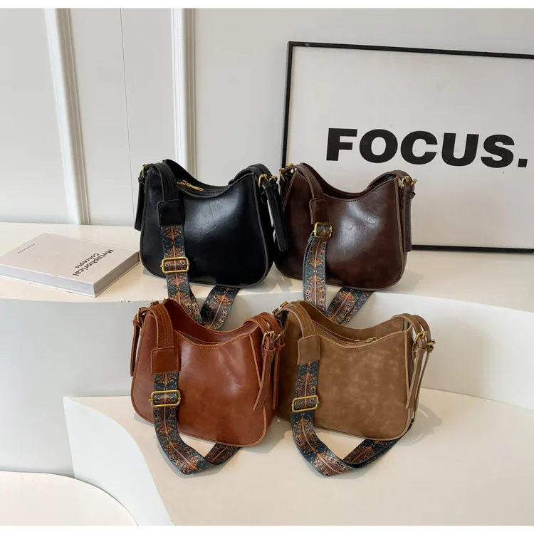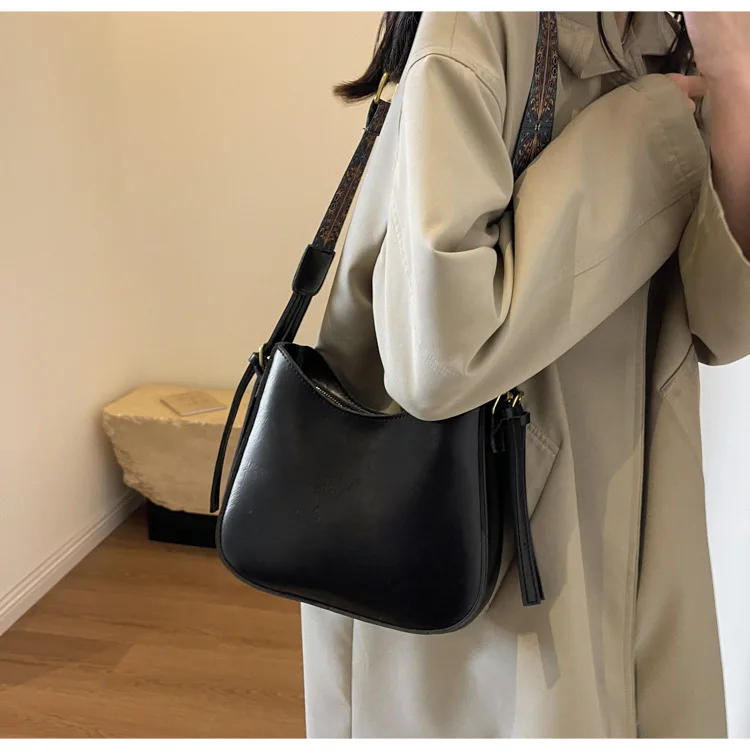 Crossbody Bags for Women Stylish Wide Strap Shoulder Bag PU Leather Daily Use Purses and Handbags with Zipper