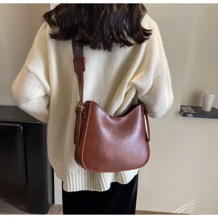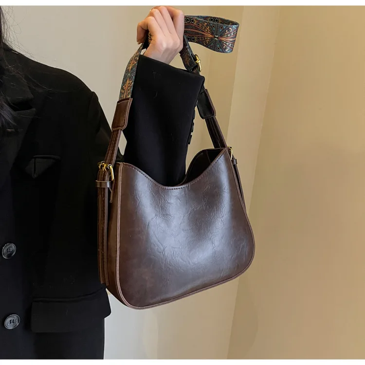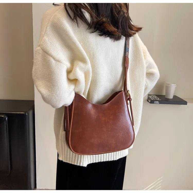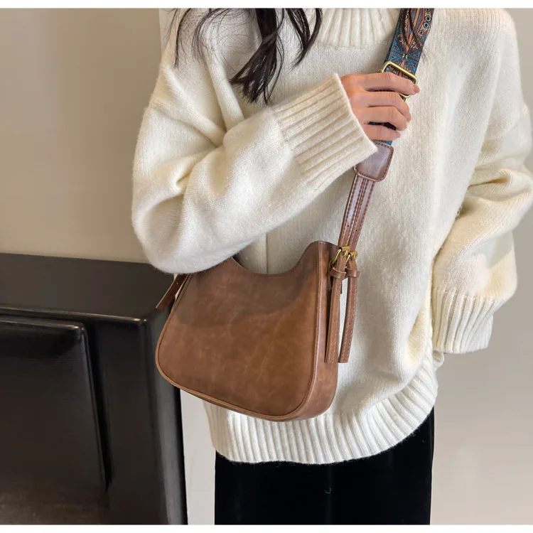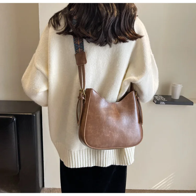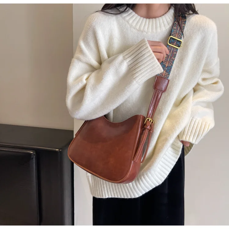 Crossbody Bags for Women Stylish Wide Strap Shoulder Bag PU Leather Daily Use Purses and Handbags with Zipper