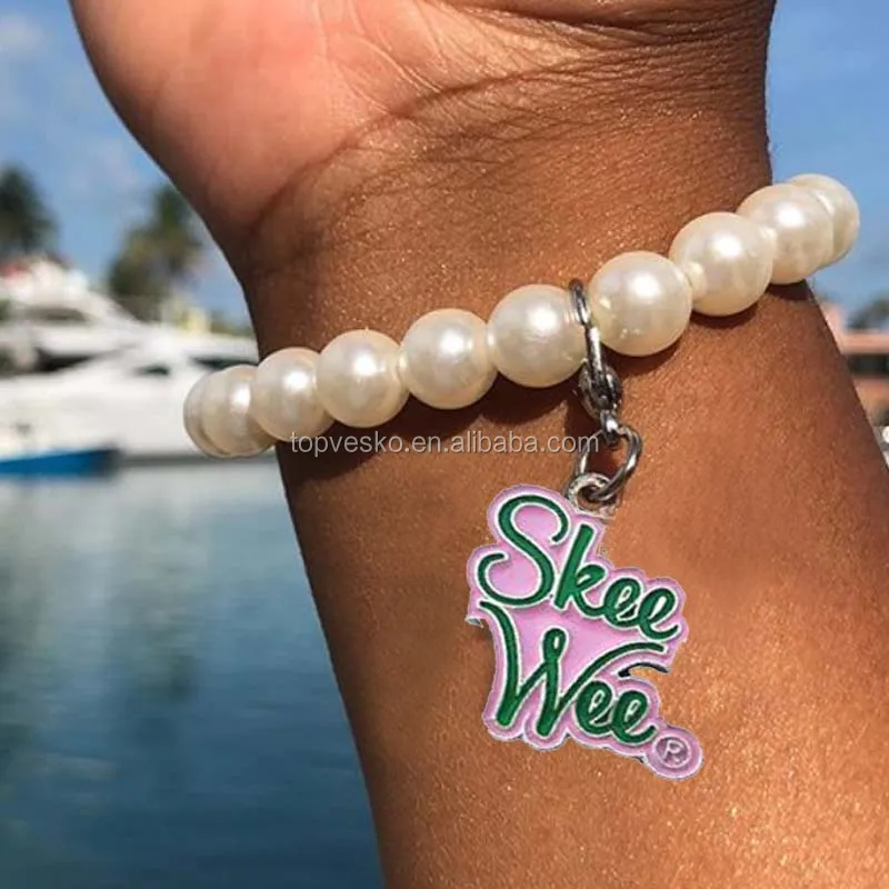 Custom Hand Made Sorority Skee wee Charm Strand Pearl Bracelets
