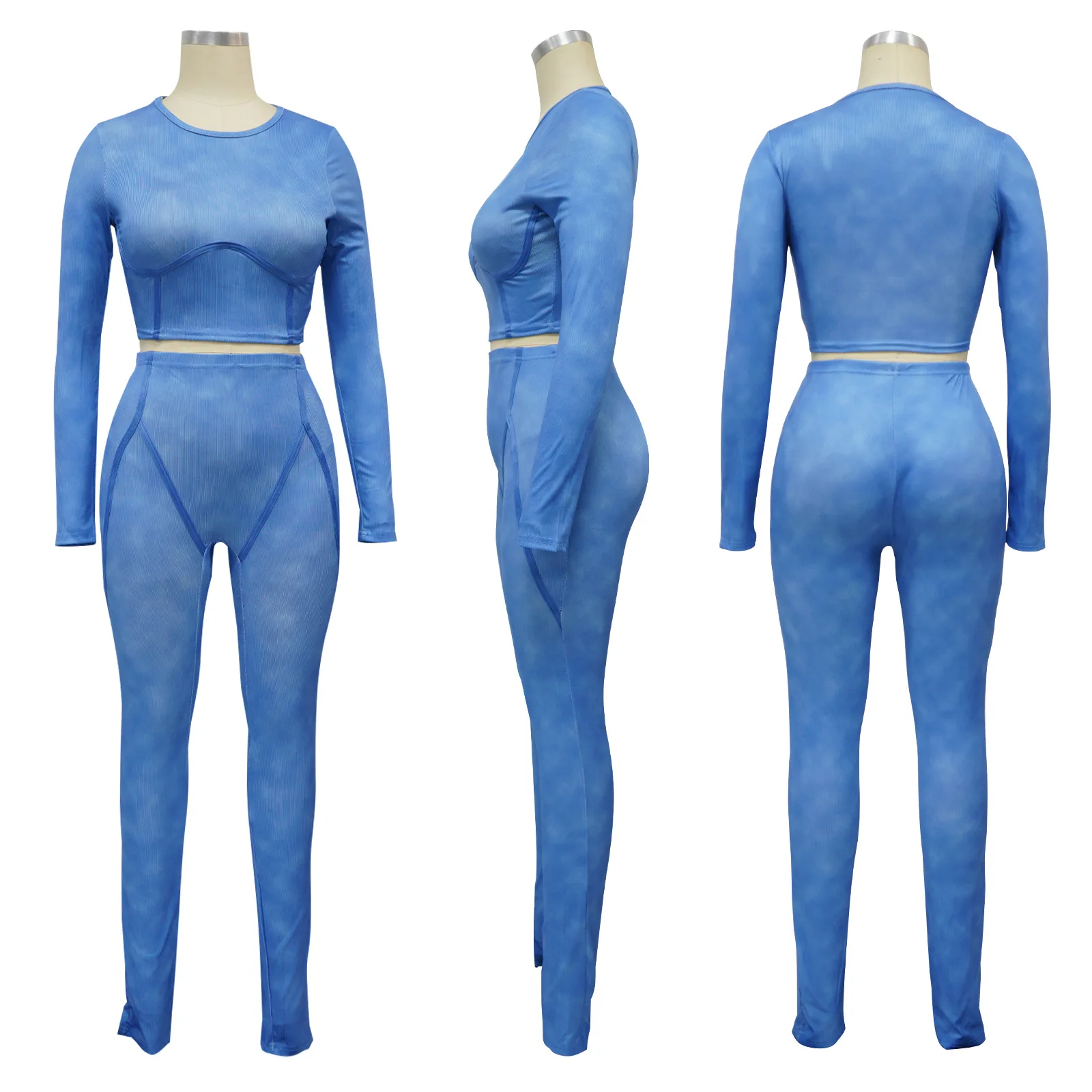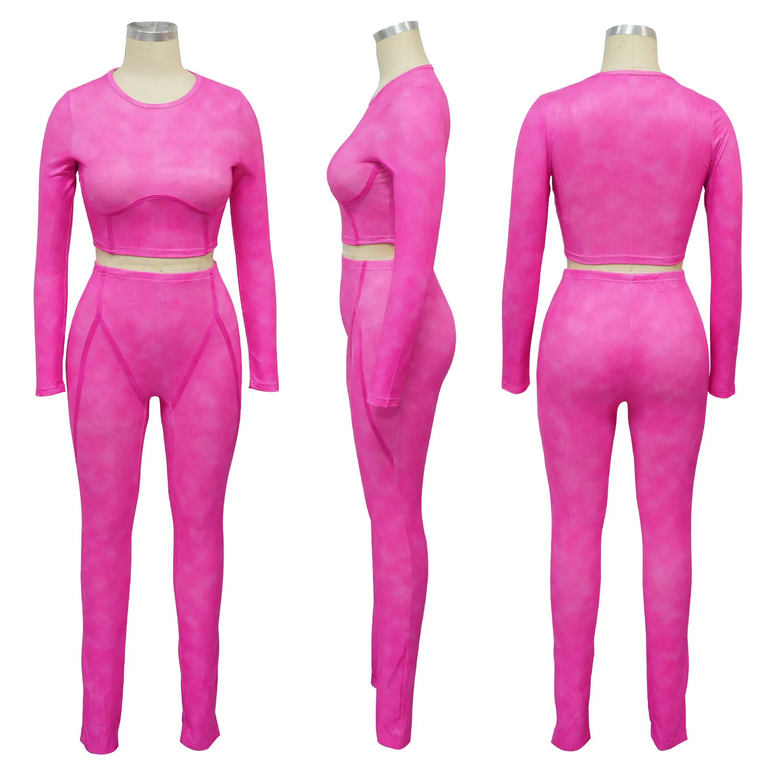 D0906TA16 Stock Available Fall Bodycon Women Crop Top Pants Set 2 Piece Set Outfits Casual Clothing Sehe Fashion