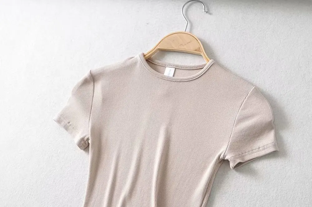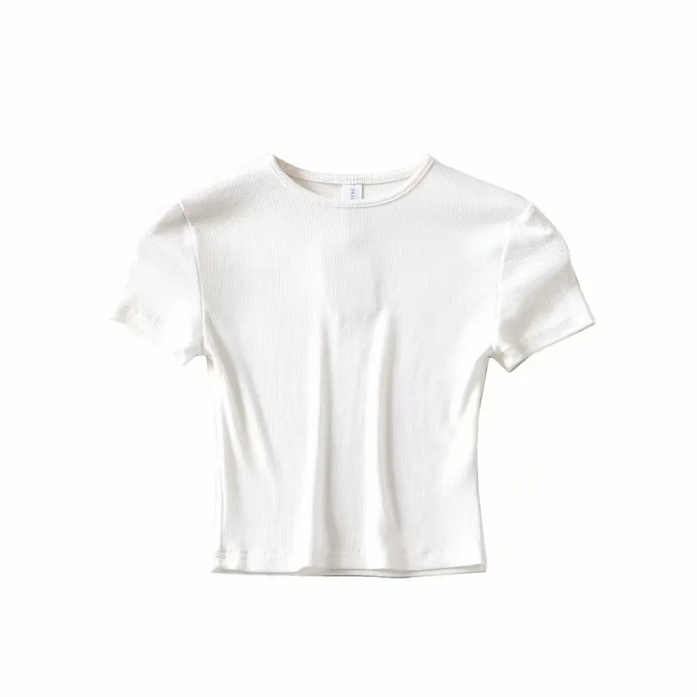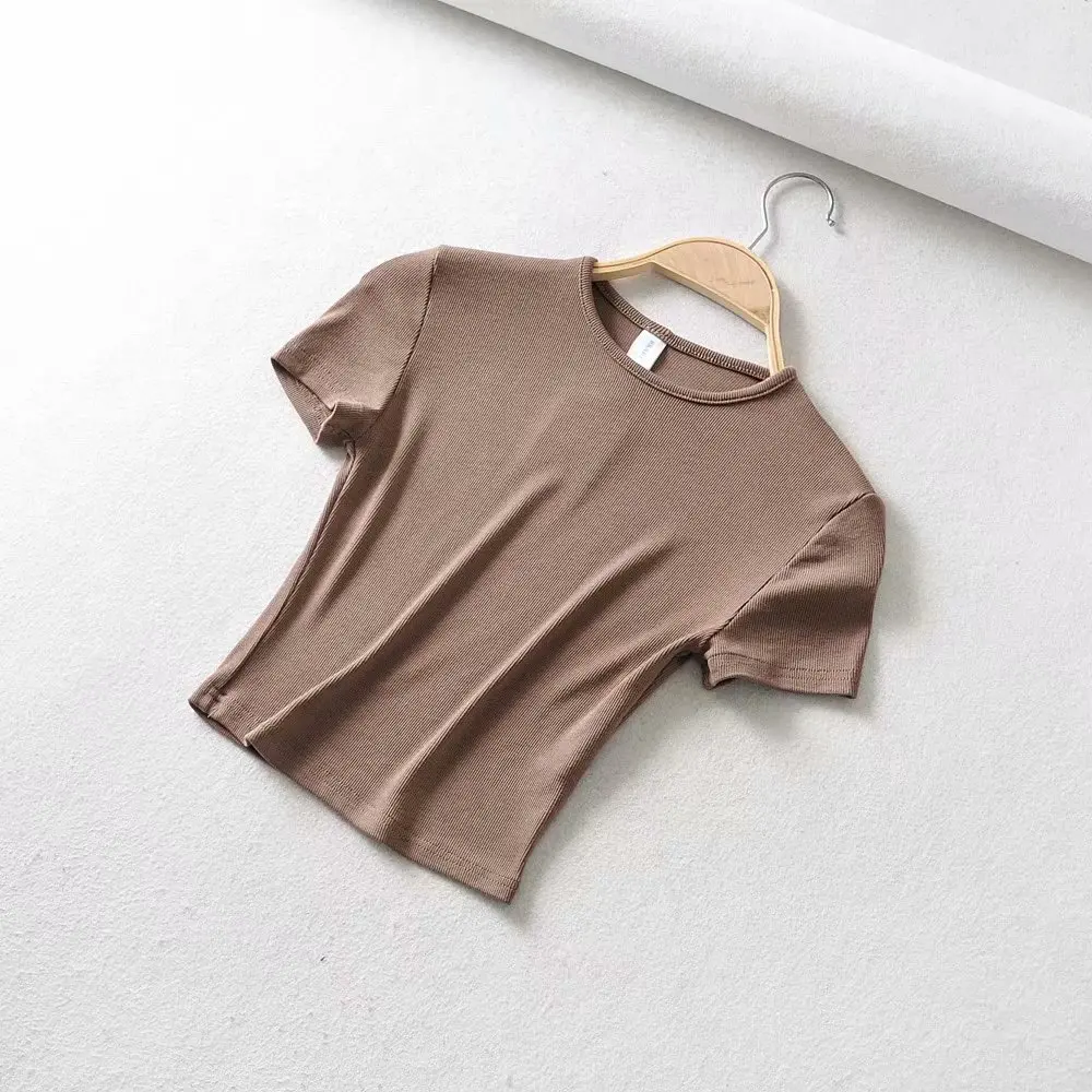 DAMOCHIC High quality Solid Color T Shirts Summer Short Sleeve Basic Blouses Round Neck Short Sleeves Crop Tops T Shirts 2023