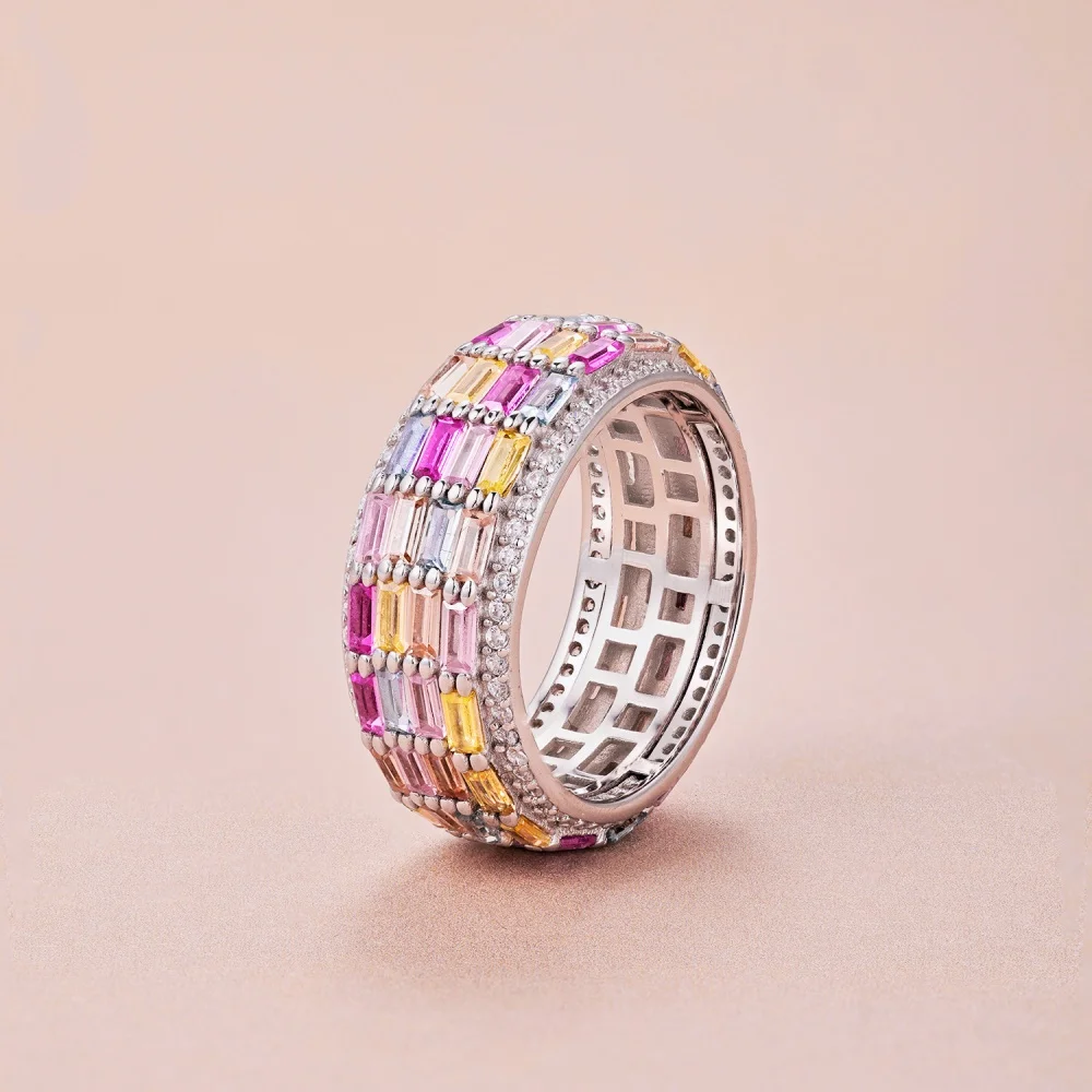Dylam Designer Jewelry 925 Sterling Silver Hypoallergenic Baguette Eternity Band 5A Cubic Zirconia Fashion Daily Life Women Ring