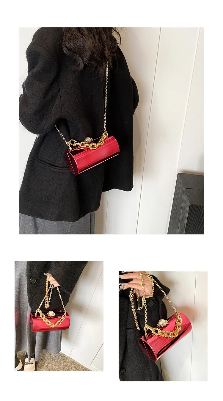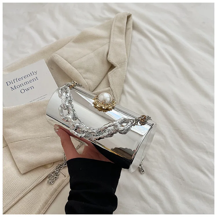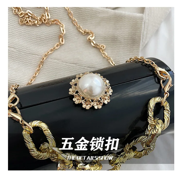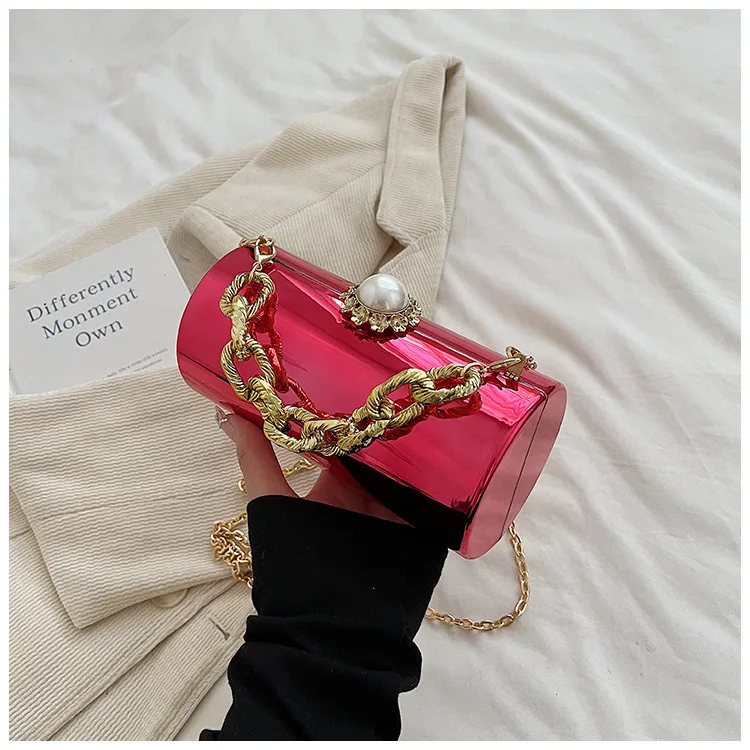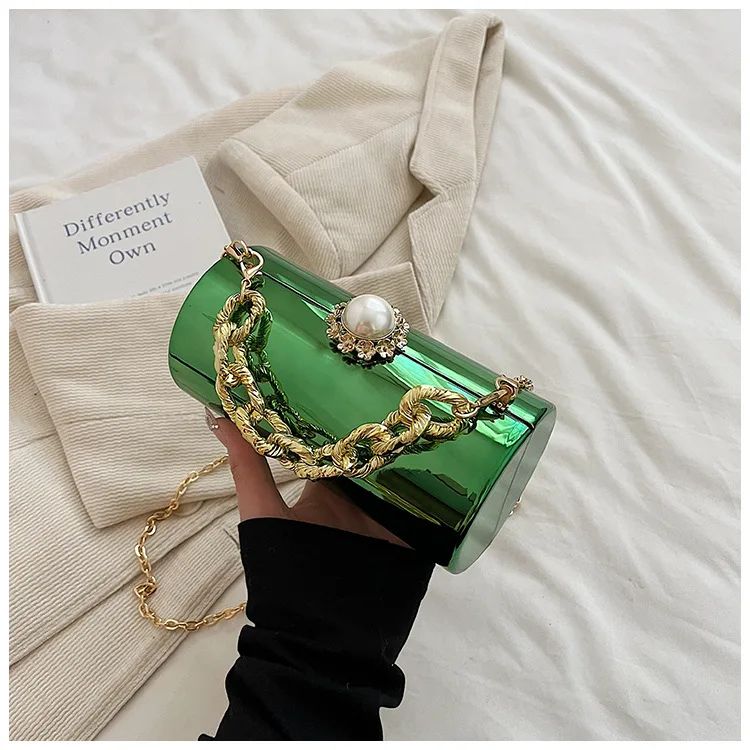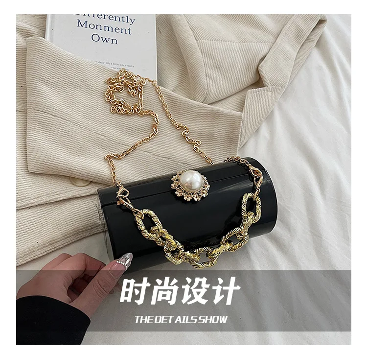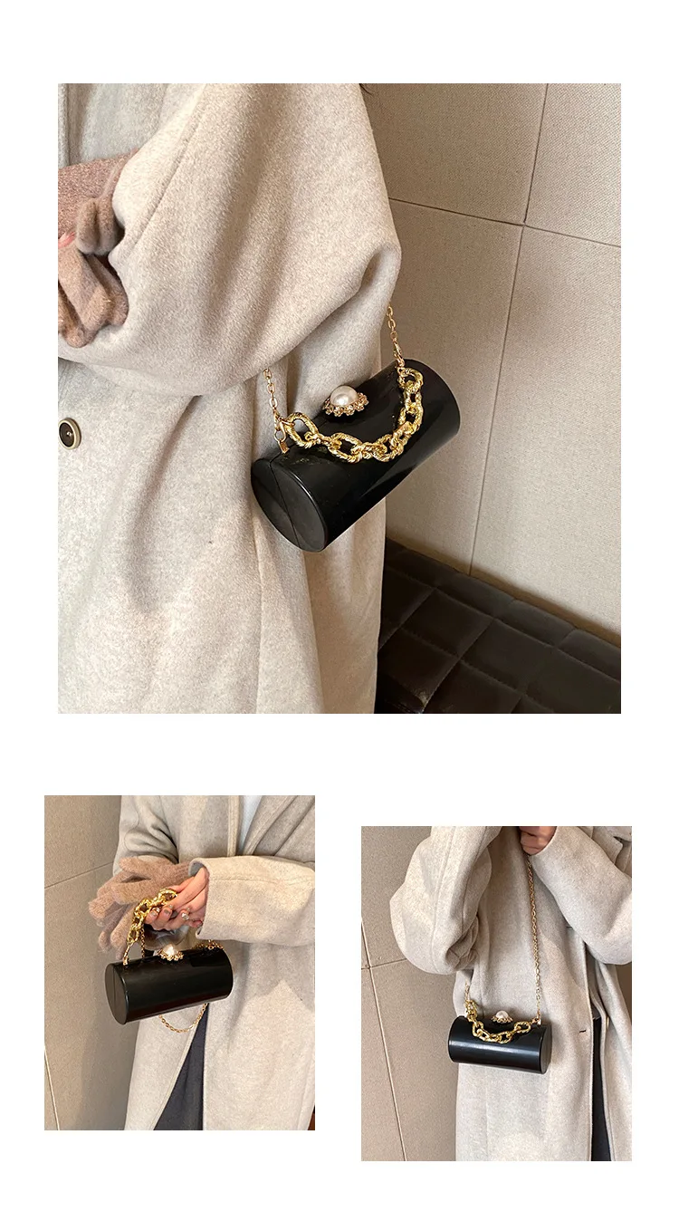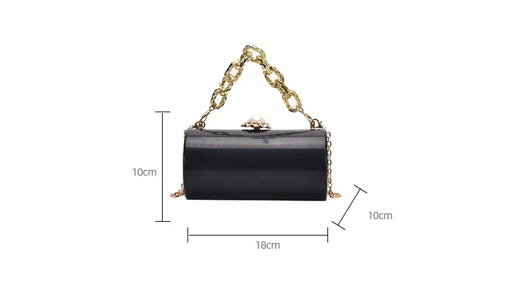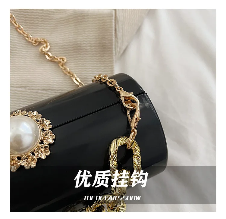 European High-end Luxury Women Party Evening Bags Designer Chain Cylinder Messenger Bag Pearl Lock Acrylic Clutch PVC Handbags
