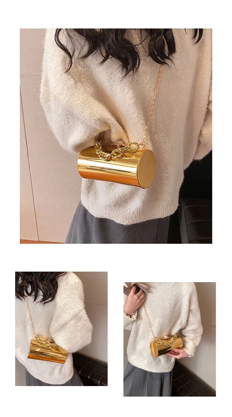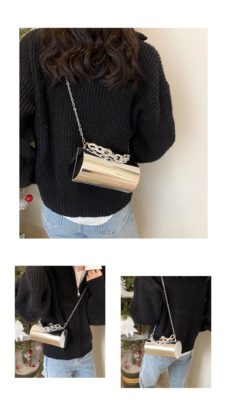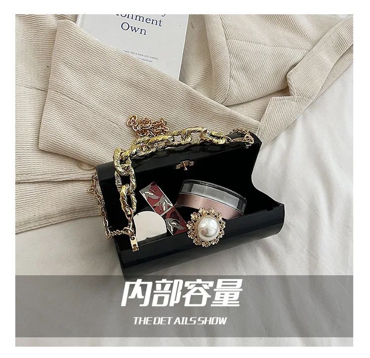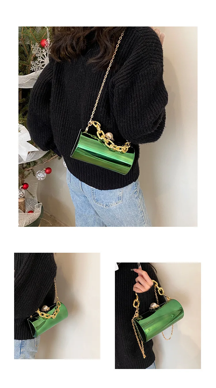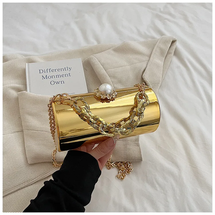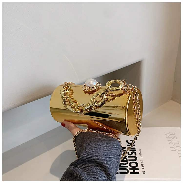 European High-end Luxury Women Party Evening Bags Designer Chain Cylinder Messenger Bag Pearl Lock Acrylic Clutch PVC Handbags