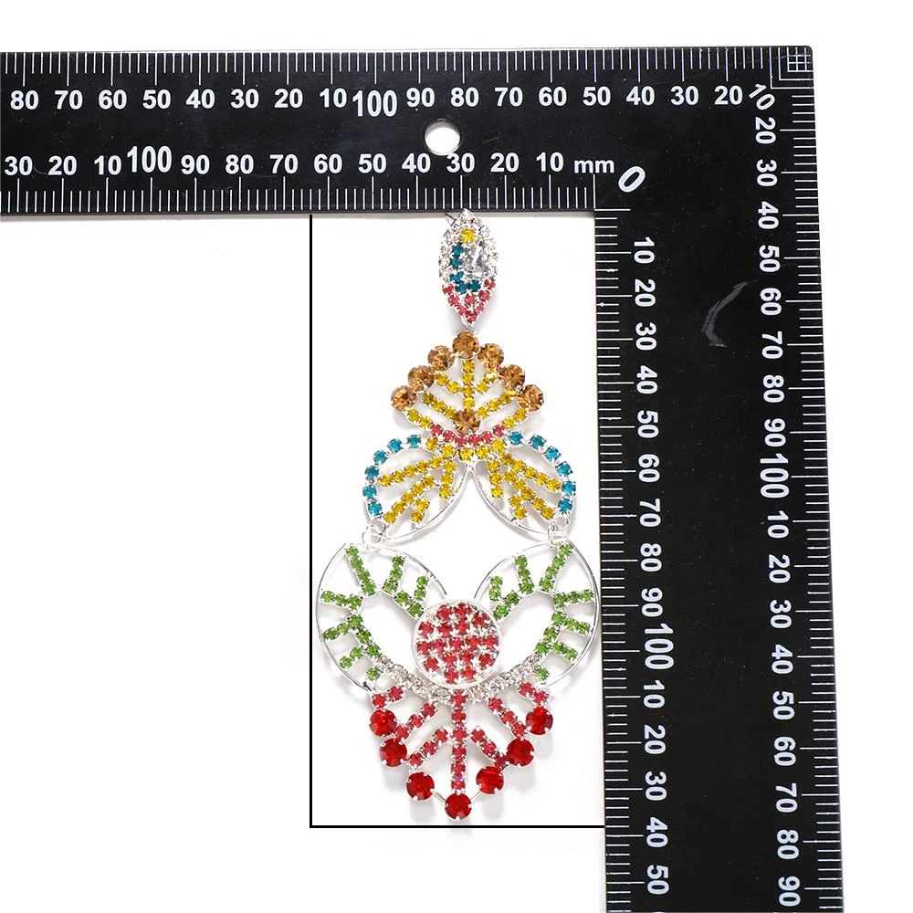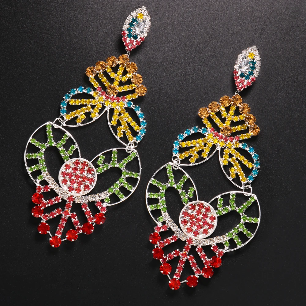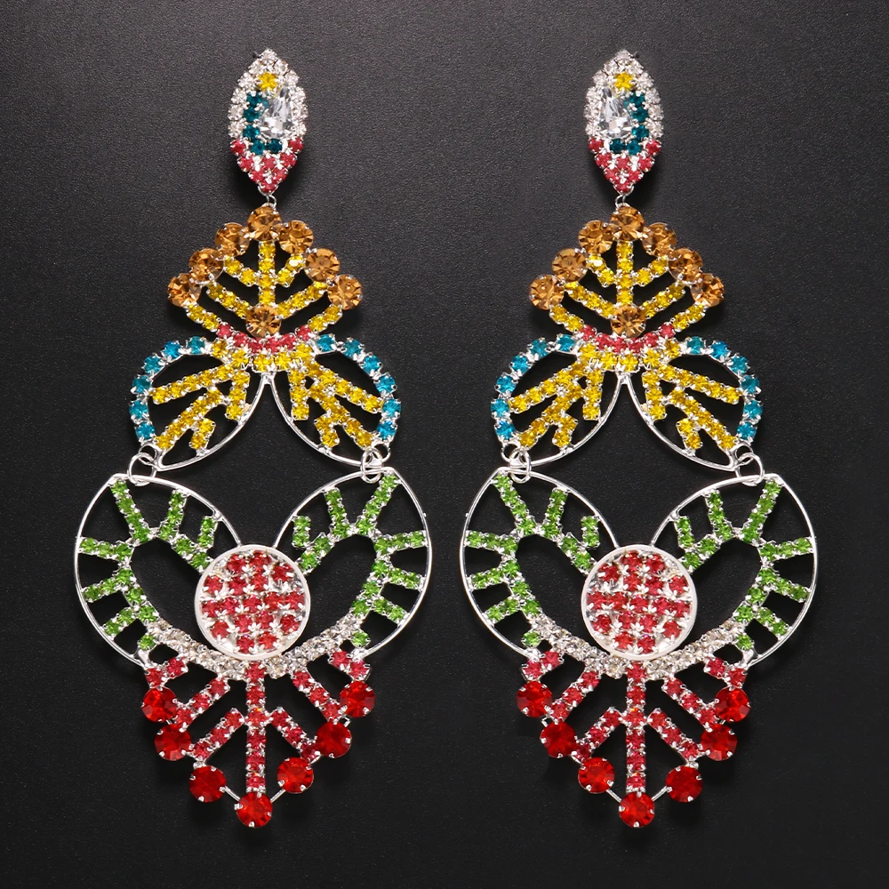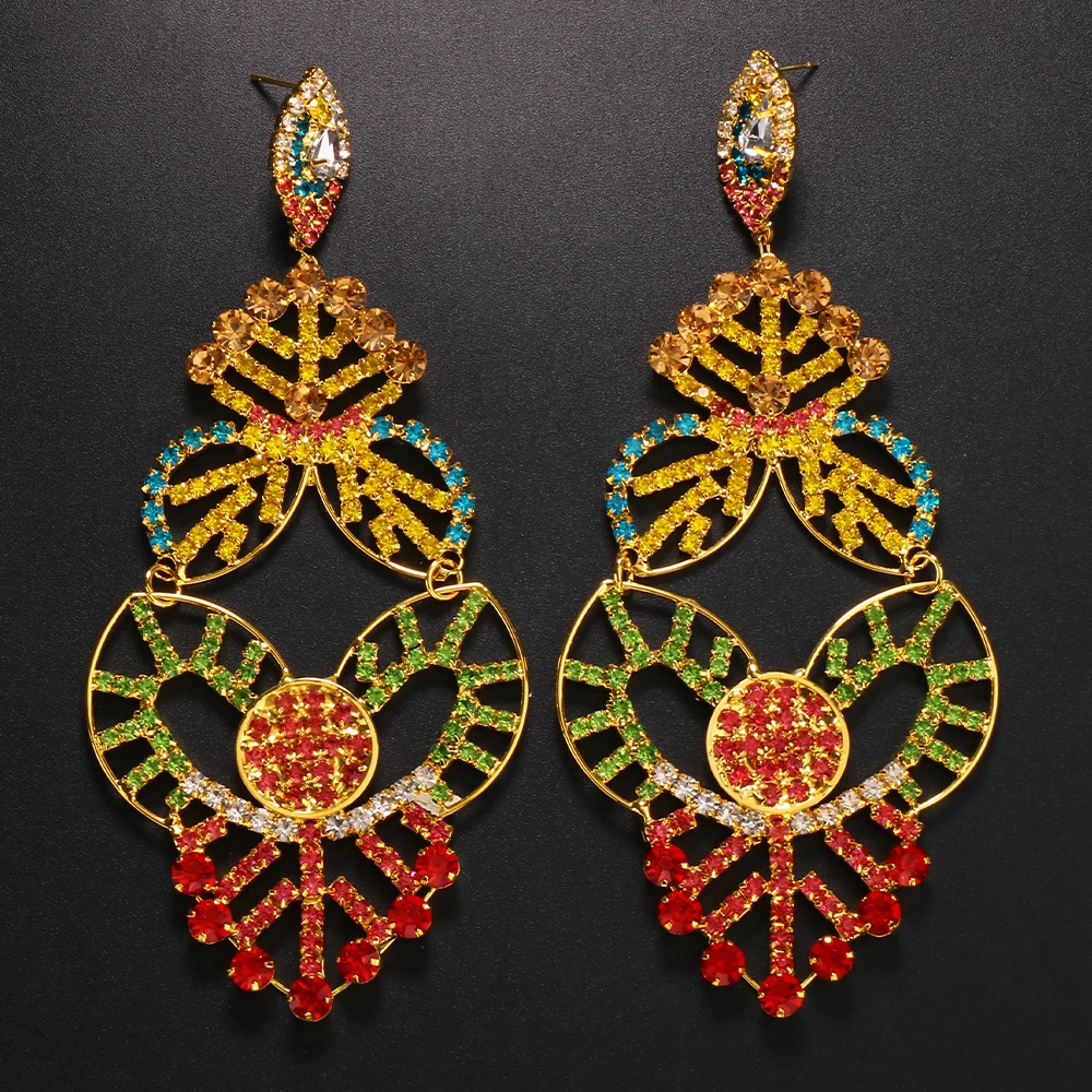 Exaggerated Colorful Hollow Rhinestone Statement Earring Fashion Long Dangle Drop Earrings Drag Queen Jewelry Accessories